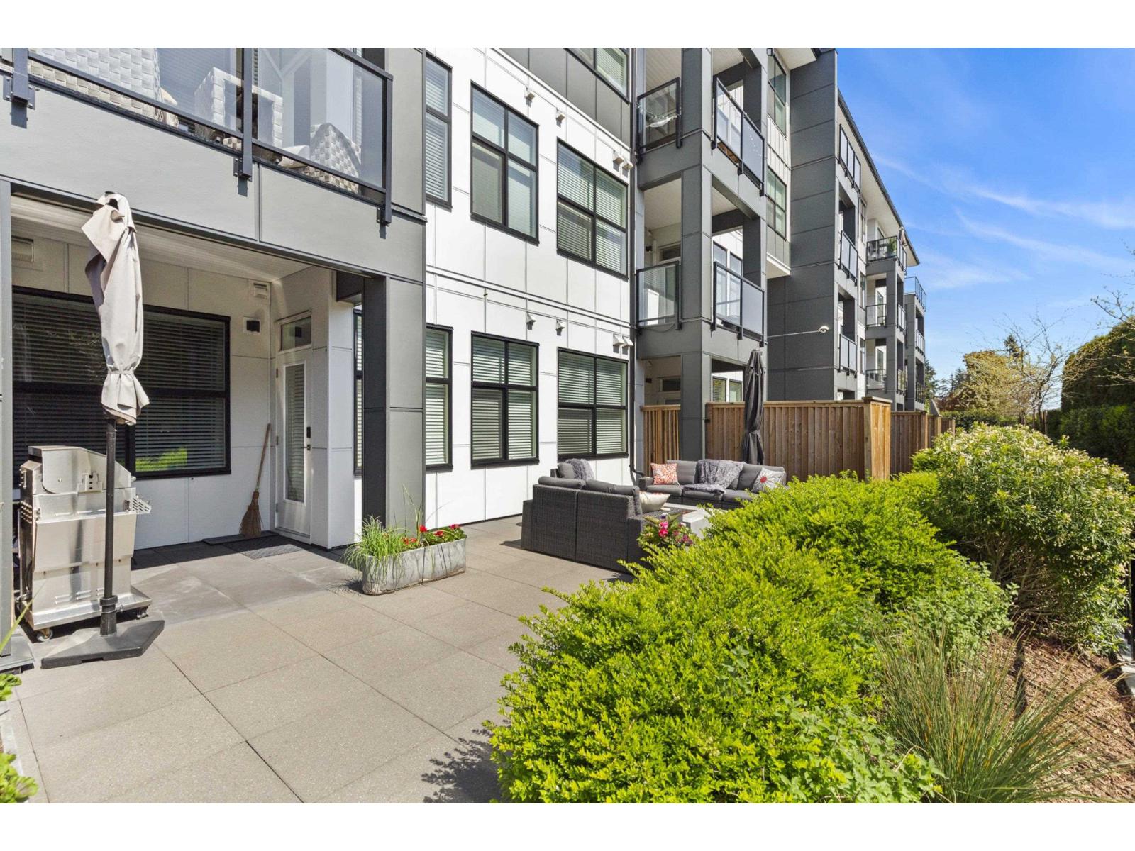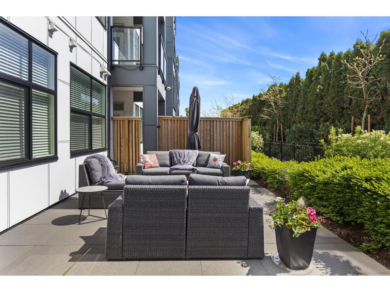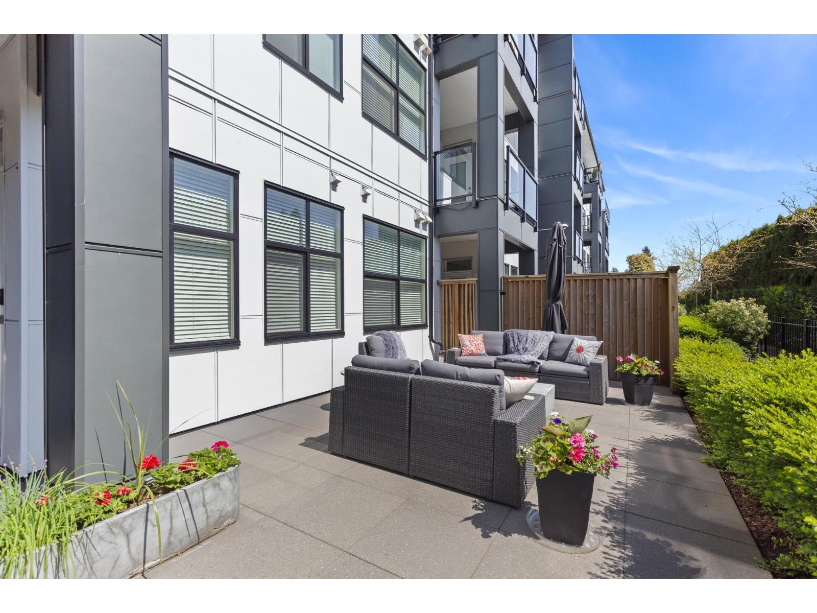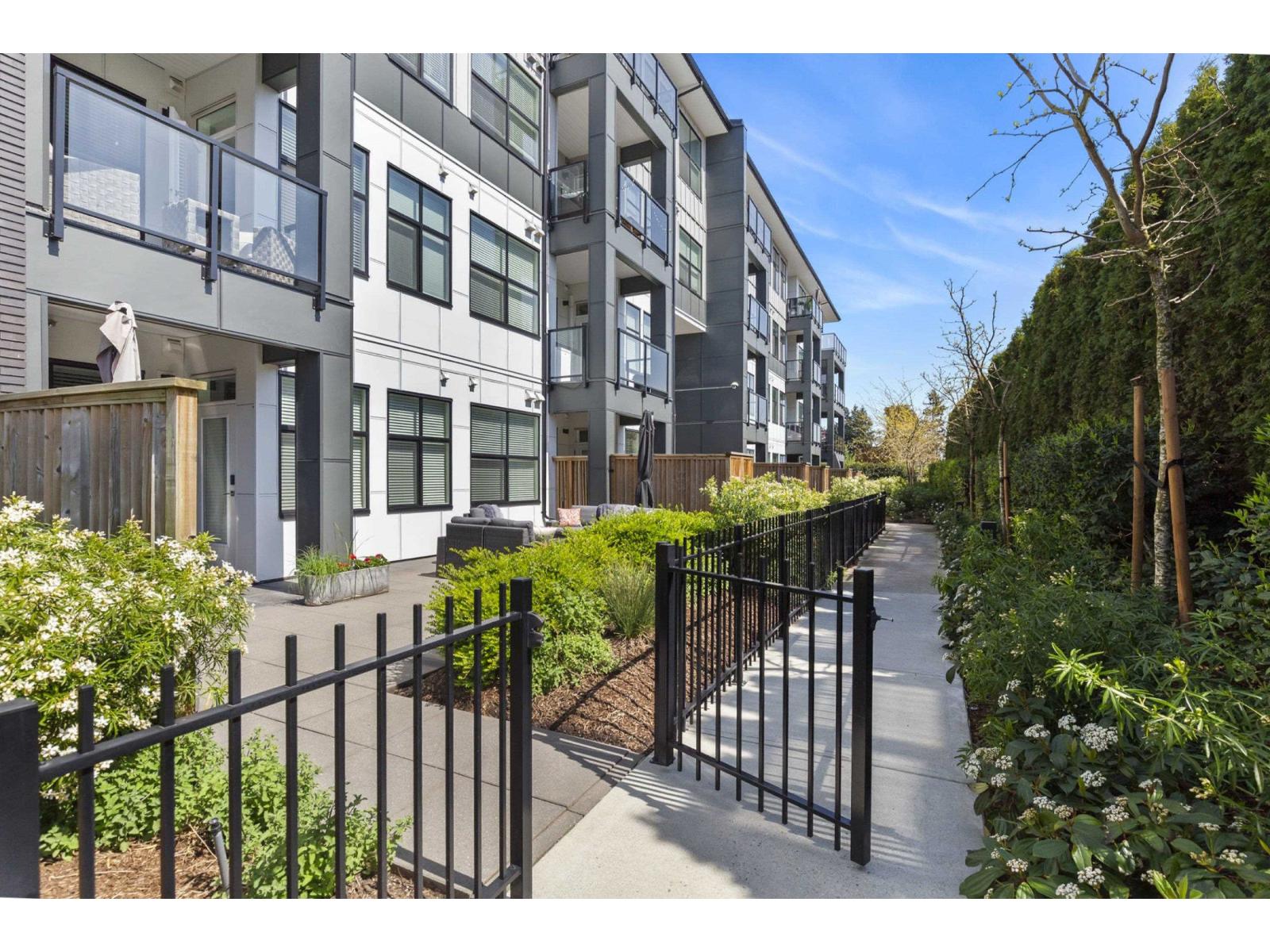Like new 2 bed & den garden home at the Onyx at the Mahogany is filled with designer touches! Fantastic outdoor living space! High 10' ceilings with huge windows offer loads of natural light. The massive walk out patio is a dream for relaxing & entertaining. Room for an amazing amount of patio furniture, umbrellas, fire table, heaters, gardening & days spent barbecuing. Fenced in yard with a gate for access to a private exit to take a walk anytime! Great layout with bedrooms on opposing sides with a 2nd bath. Spacious open kitchen with large work surface area on peninsula with seating, stainless gas stove, large stainless water and ice fridge. In suite laundry with storage. 2 side by side parking, storage locker and bike storage! Enjoy the gym & meeting room. (id:63510)