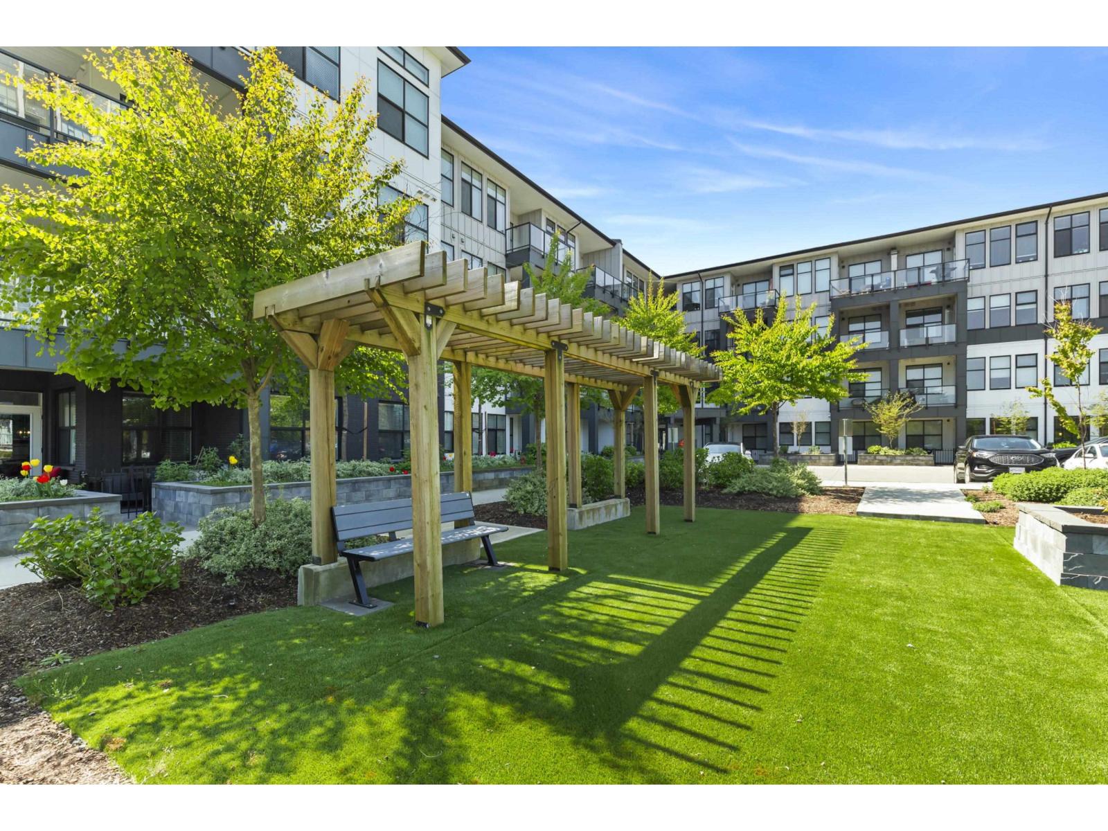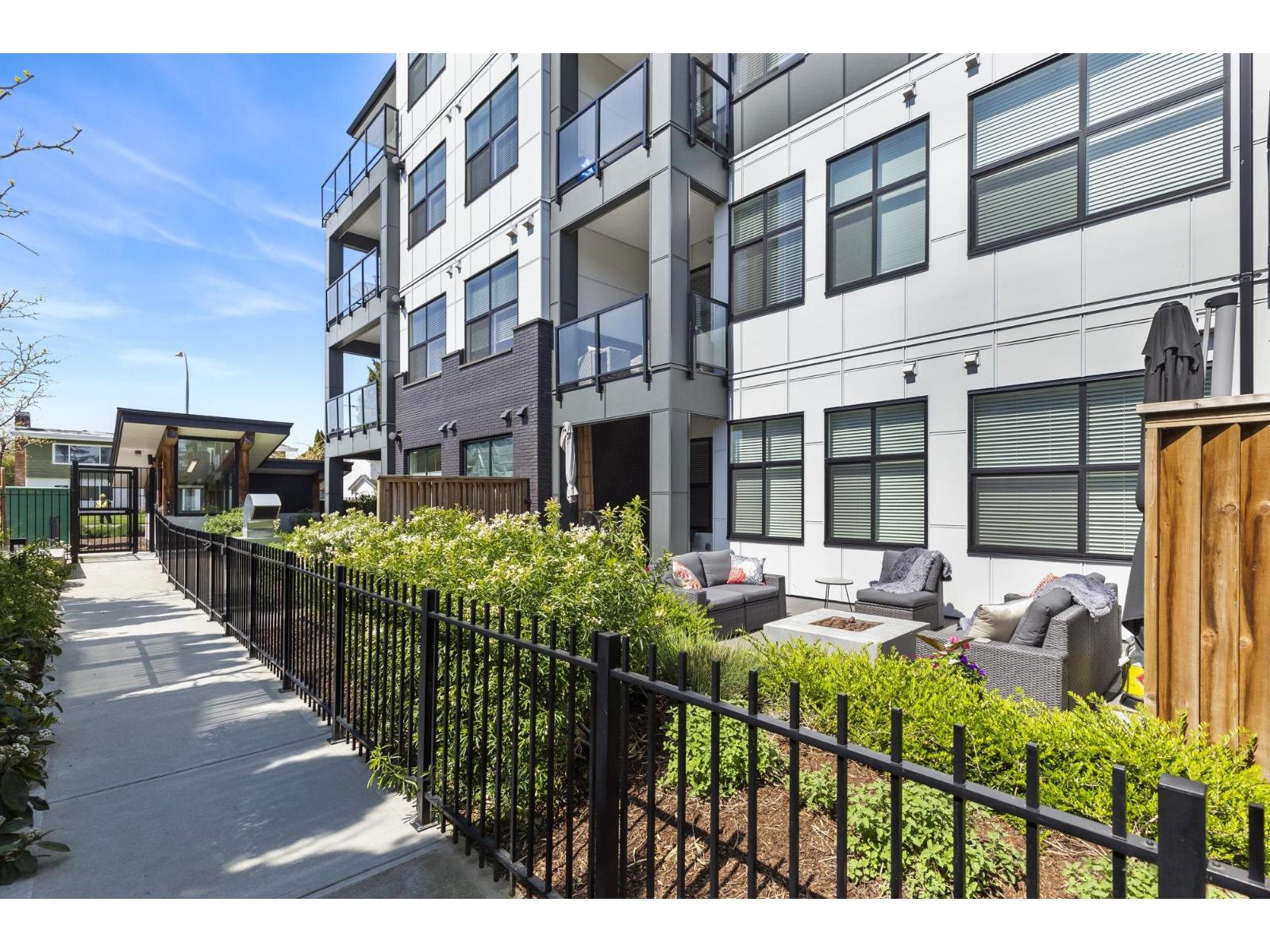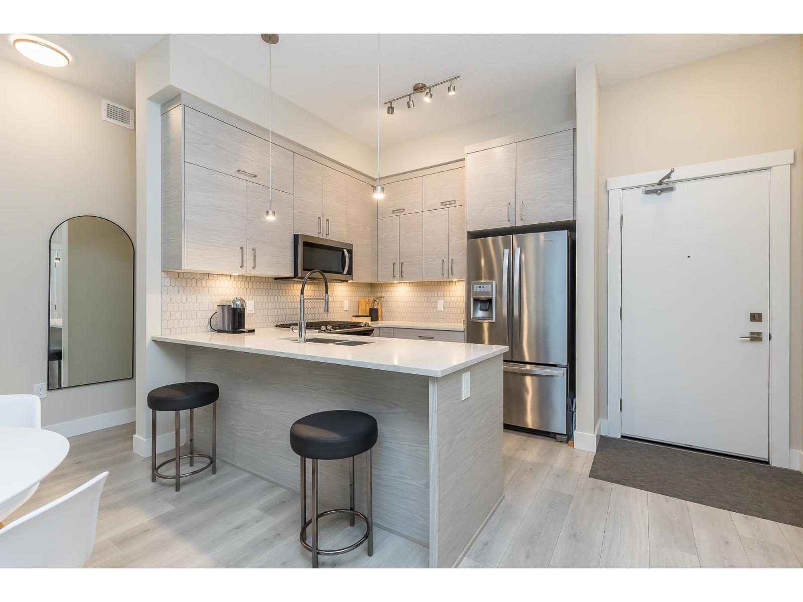 Like new 2 bed & den garden home at the Onyx at the Mahogany is filled with designer touches! Fantastic outdoor living space! High 10' ceilings with huge windows offer loads of natural light. The massive walk out patio is a dream for relaxing & entertaining. Room for an amazing amount of patio furniture, umbrellas, fire table, heaters, gardening & days spent barbecuing. Fenced in yard with a gate for access to a private exit to take a walk anytime! Great layout with bedrooms on opposing sides with a 2nd bath. Spacious open kitchen with large work surface area on peninsula with seating, stainless gas stove, large stainless water and ice fridge. In suite laundry with storage. 2 side by side parking, storage locker and bike storage! Enjoy the gym & meeting room. (id:63510)