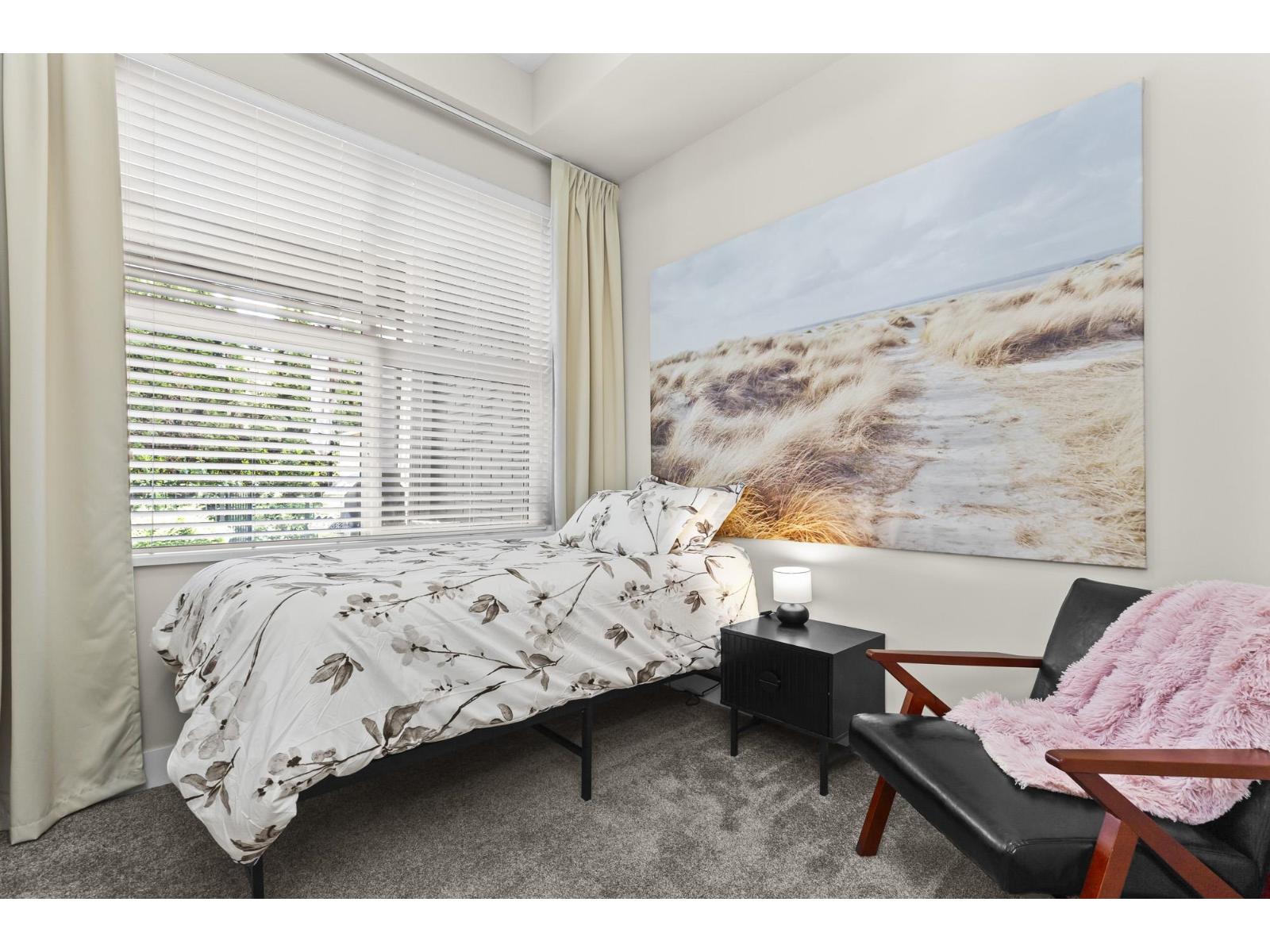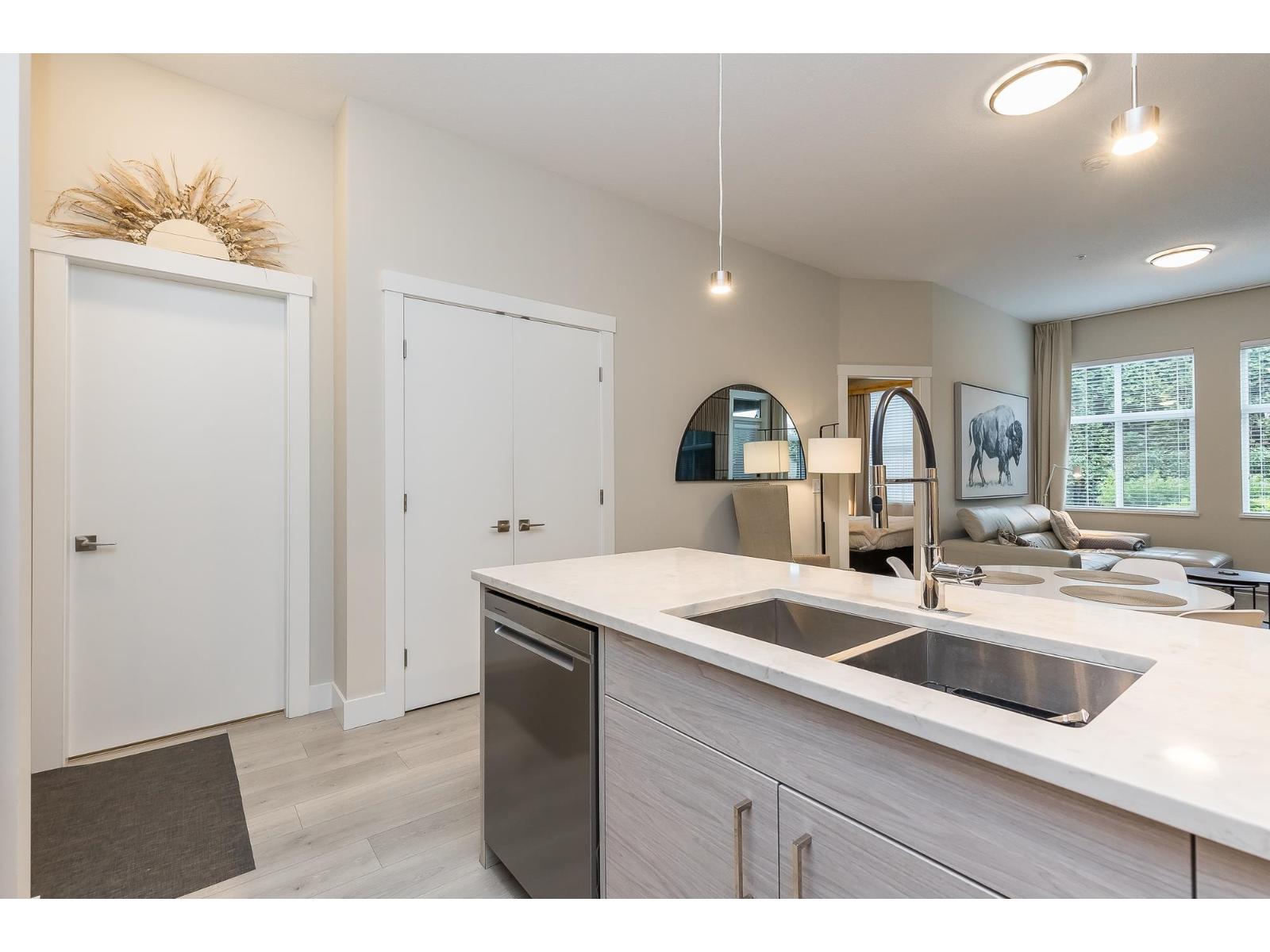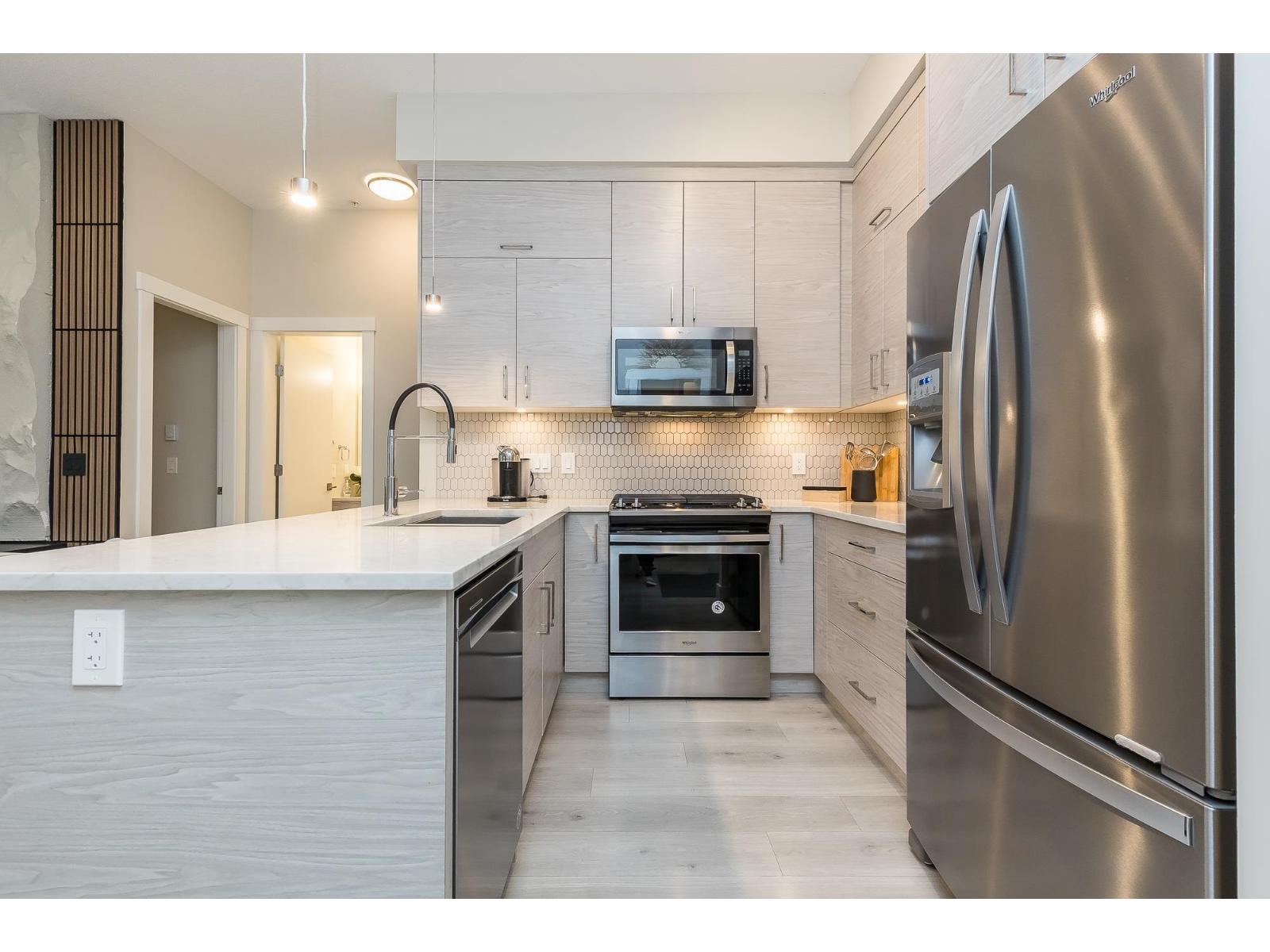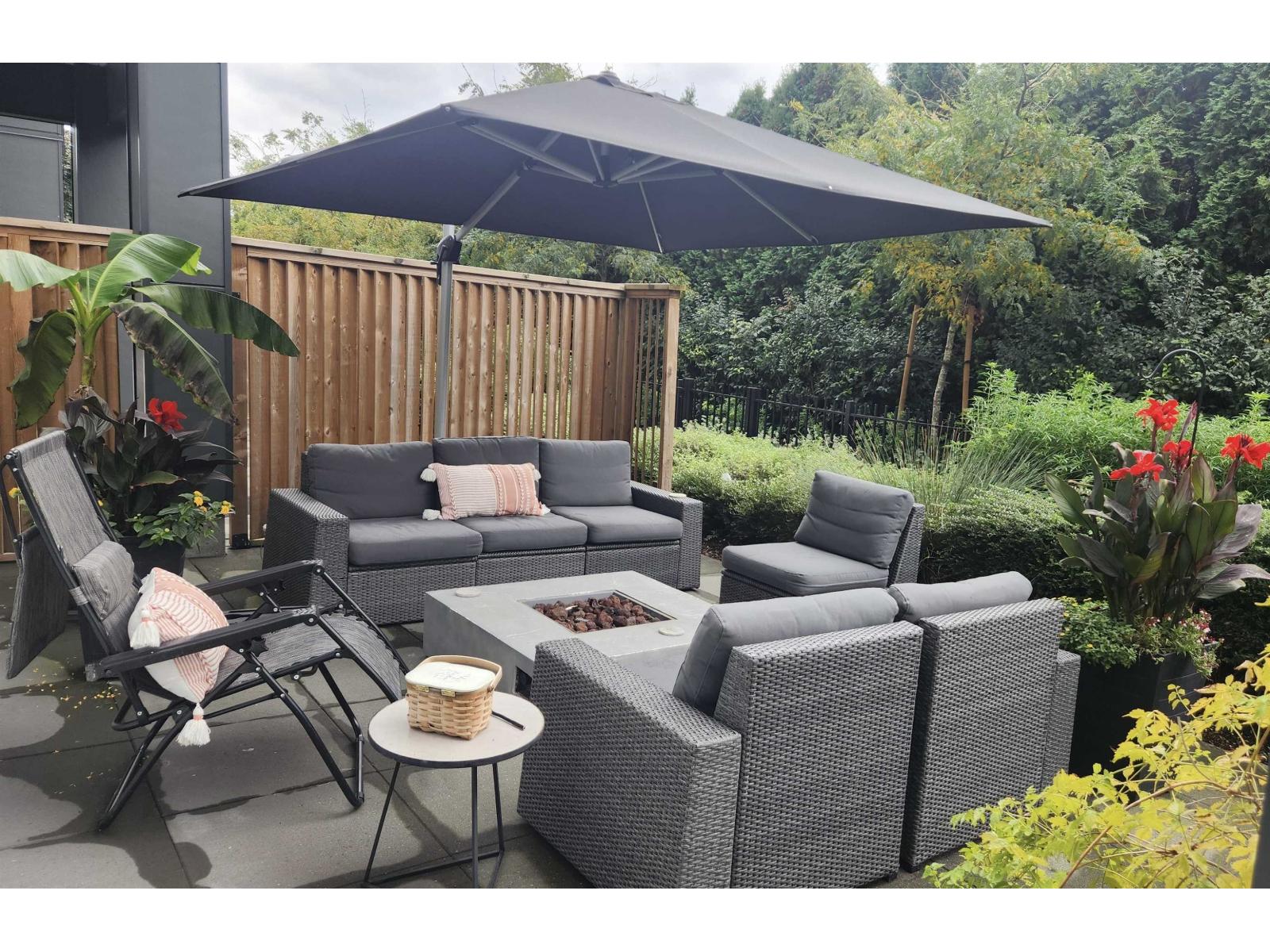 Like new 2 bed & den garden home at the Onyx at the Mahogany is filled with designer touches! Fantastic outdoor living space! High 10' ceilings with huge windows offer loads of natural light. The massive walk out patio is a dream for relaxing & entertaining. Room for an amazing amount of patio furniture, umbrellas, fire table, heaters, gardening & days spent barbecuing. Fenced in yard with a gate for access to a private exit to take a walk anytime! Great layout with bedrooms on opposing sides with a 2nd bath. Spacious open kitchen with large work surface area on peninsula with seating, stainless gas stove, large stainless water and ice fridge. In suite laundry with storage. 2 side by side parking, storage locker and bike storage! Enjoy the gym & meeting room. (id:63510)