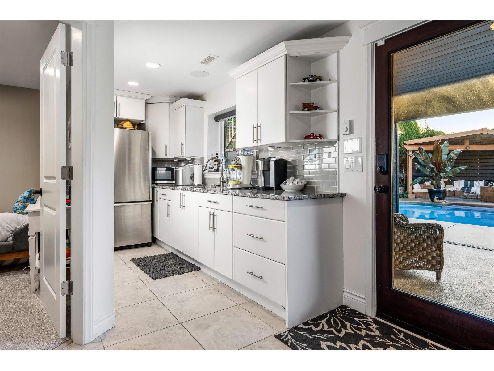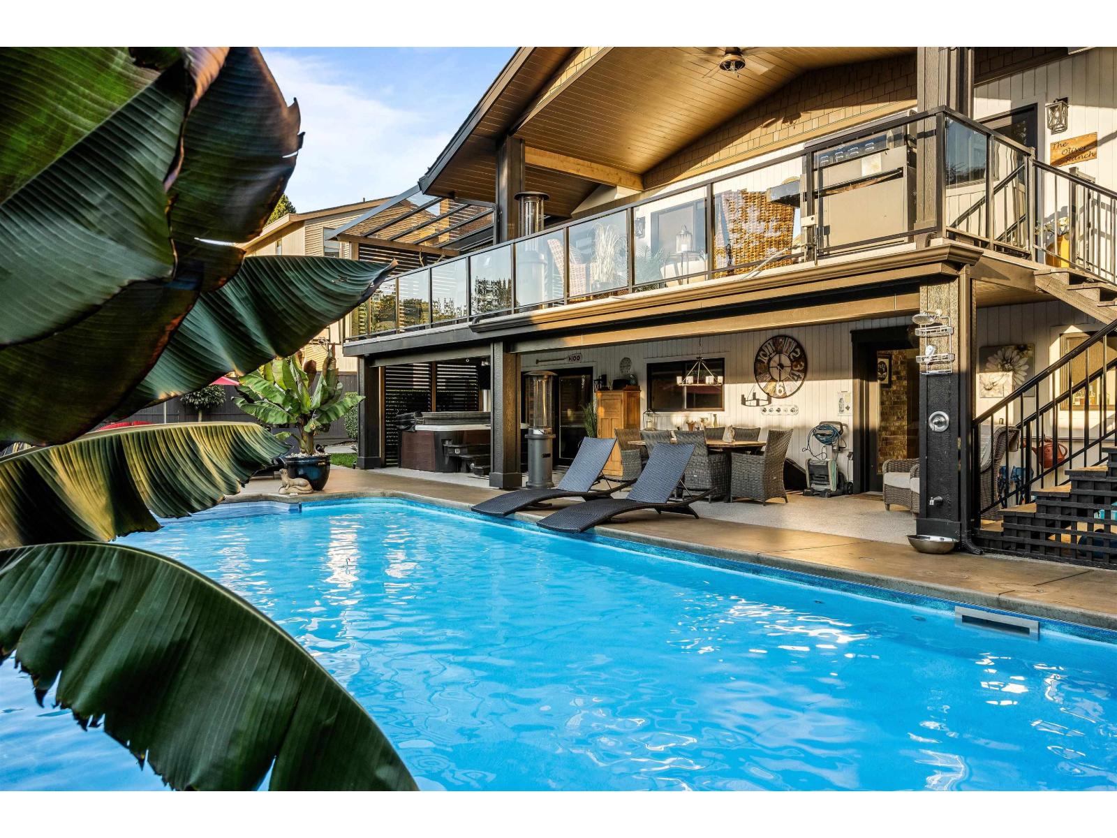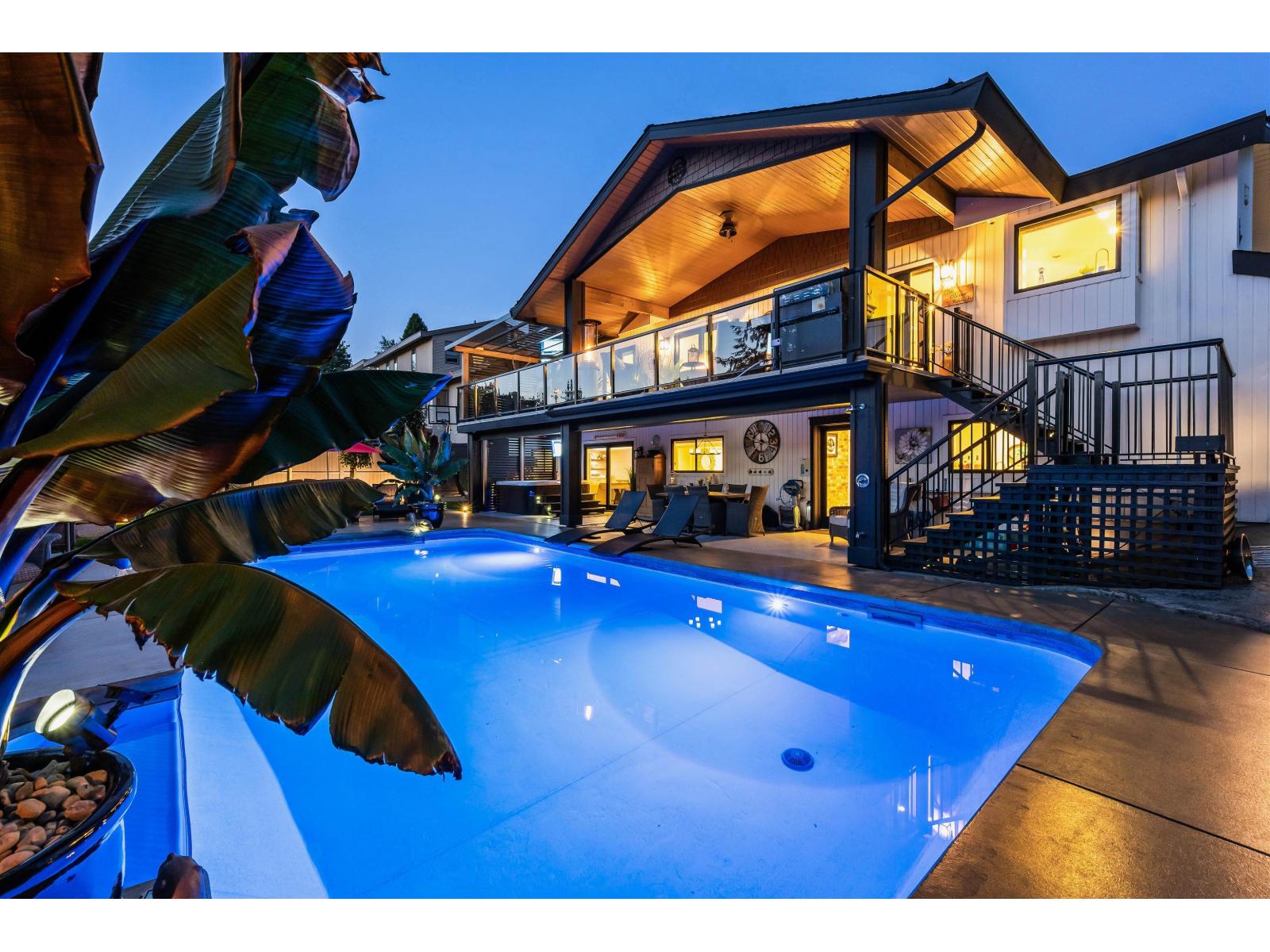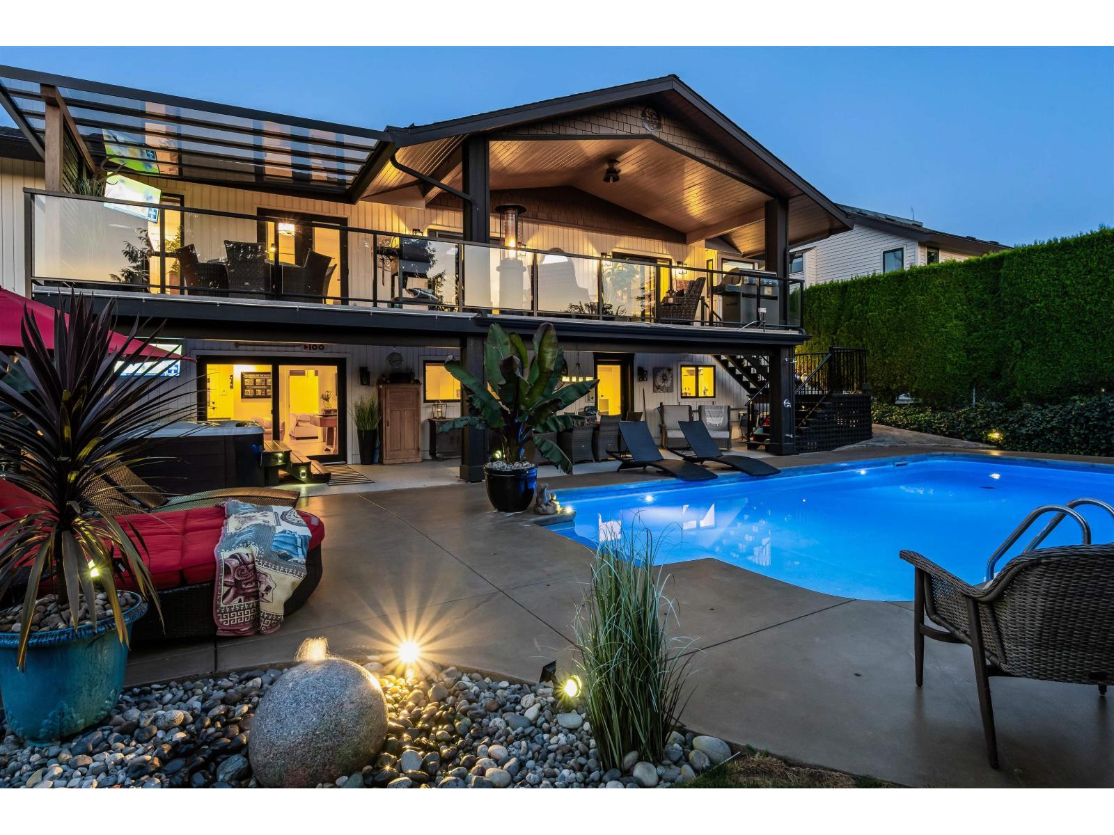 Over $700K in recent upgrades elevate this exceptional home on one of Abbotsford's most sought-after streets. Enjoy new AC/furnace, windows, exterior paint, concrete drive and walkways, plus a heated pool, hot tub and fully covered upper patio for year-round entertaining. Inside, every detail impresses: refinished Old World cabinets, new appliances, redesigned bathrooms, and a versatile lower bar kitchen ready to become a full suite. Heated, air-conditioned epoxy-floored garage. Steps to all levels of school-move in and indulge in true luxury living. (id:63510)