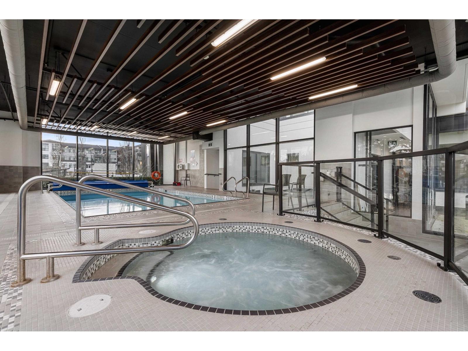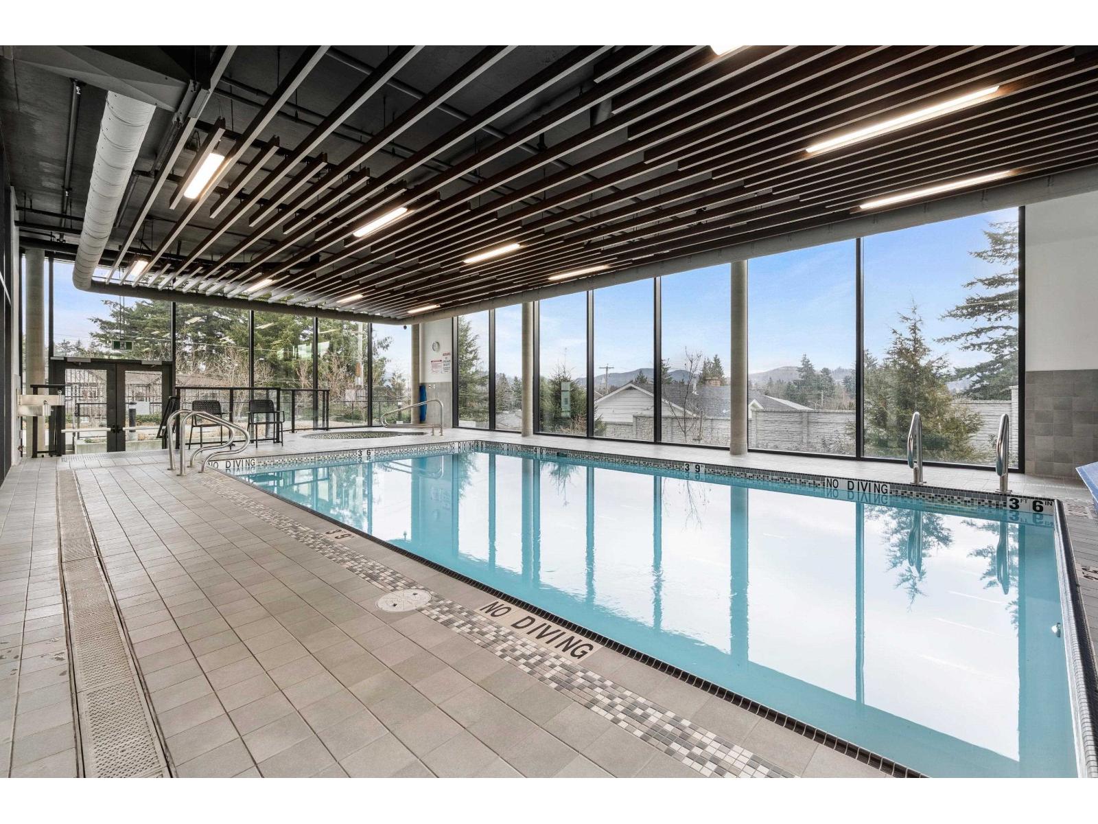 East-facing condo in Mahogany at Mill Lake! Enjoy breathtaking views of Mt. Baker and Mill Lake through floor-to-ceiling windows that flood the home with natural light. This 2-bedroom, 2-bath residence features geothermal heating and cooling, engineered hardwood flooring, heated tile bathroom floors, high-end fixtures, a gas fireplace, and a spa-inspired ensuite with a rain shower. Mahogany offers resort-style amenities including an indoor pool, hot tub, fitness centre, bistro, workshop, outdoor BBQ area, car wash, and 2 guest suites. Just steps to shopping, dining, and Abbotsford Regional Hospital, this home combines luxury living with unbeatable convenience. (id:63510)