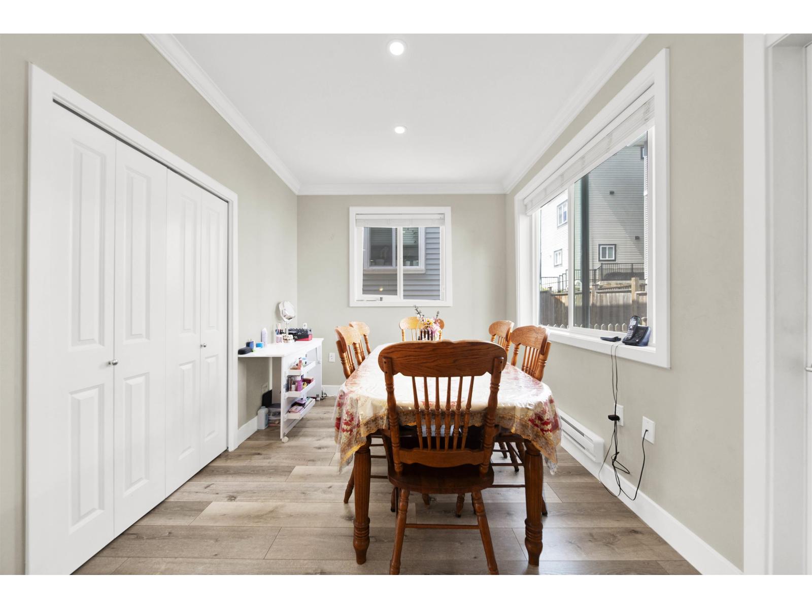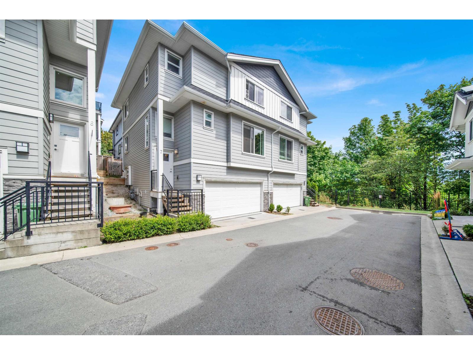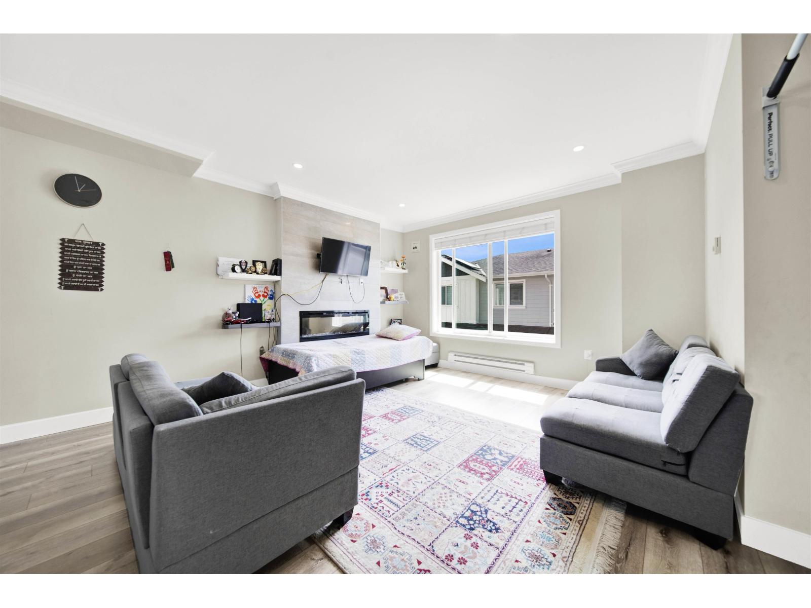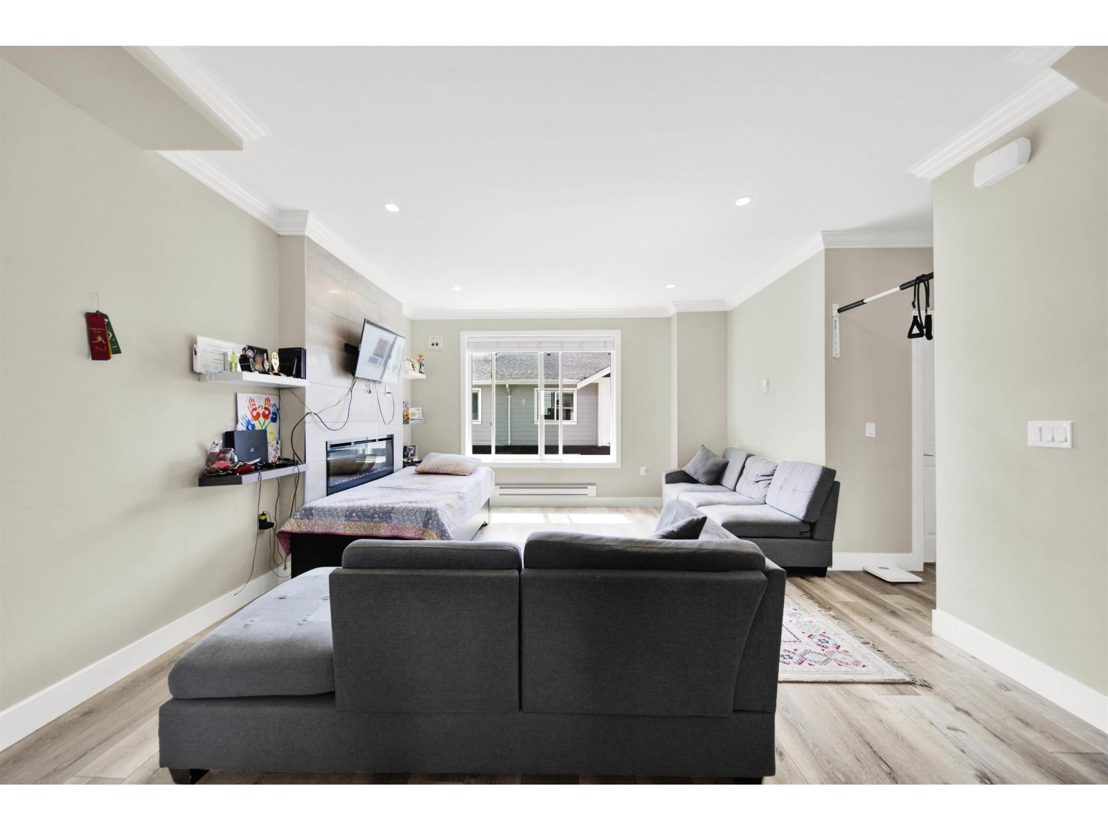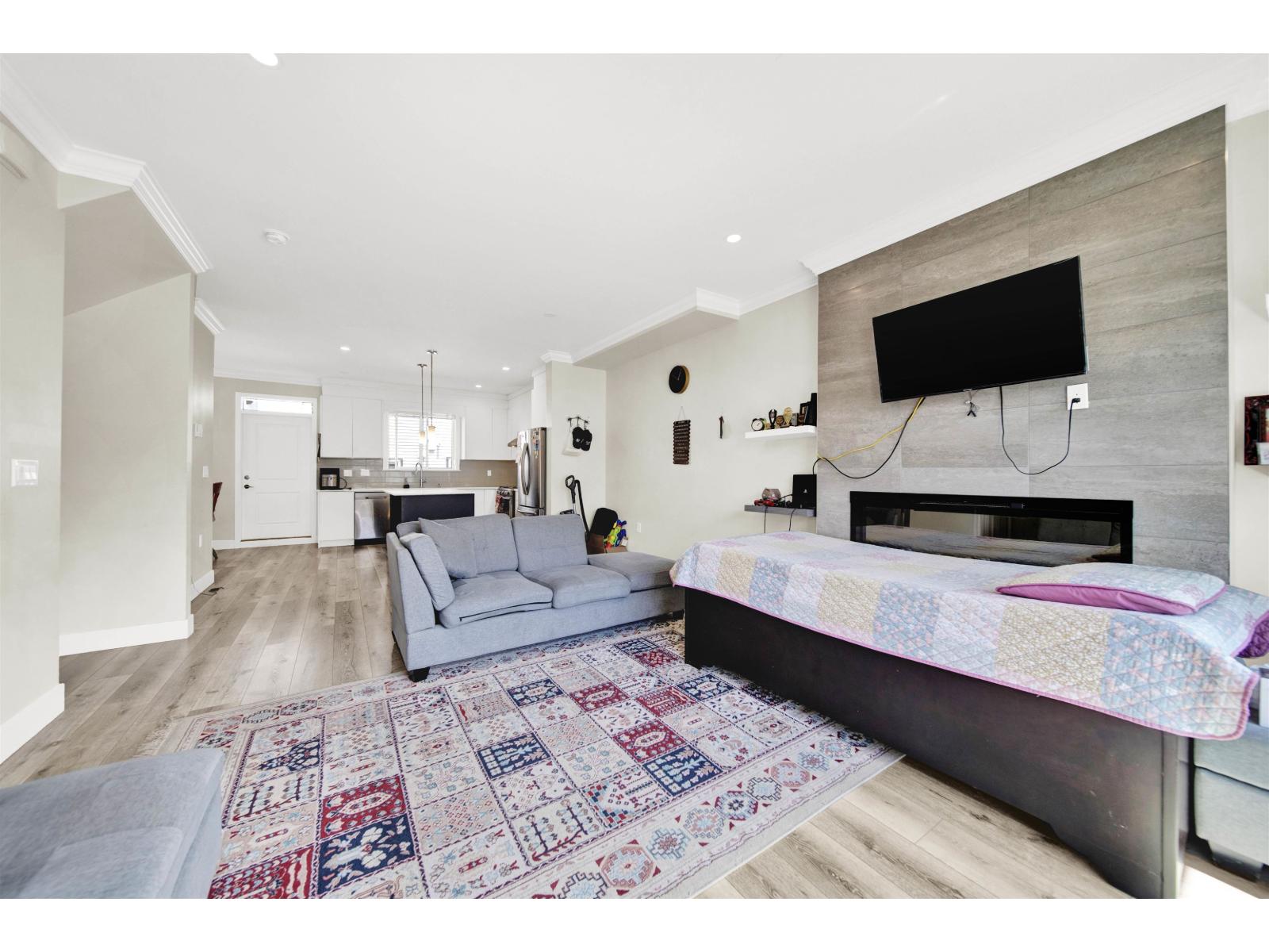 Stunning Corner Unit at Maclure Point! This beautifully designed home features over 1,800 sq. ft. of contemporary West Coast living, complete with a double car garage and 9' ceilings on the main floor. The modern kitchen boasts sleek flat-panel cabinetry, solid quartz countertops, stainless steel appliances, and is complemented by stylish designer lighting fixtures in both the kitchen and dining areas. Relax by the electric fireplace in the spacious living room. The master bedroom includes a generous walk-in closet for added convenience. Enjoy outdoor space with a fenced yard, and benefit from an unbeatable location-just minutes from schools, freeway access, walking trails, and urban amenities. Rentals and 2 pets allowed-perfect for families or investors! (id:63510)