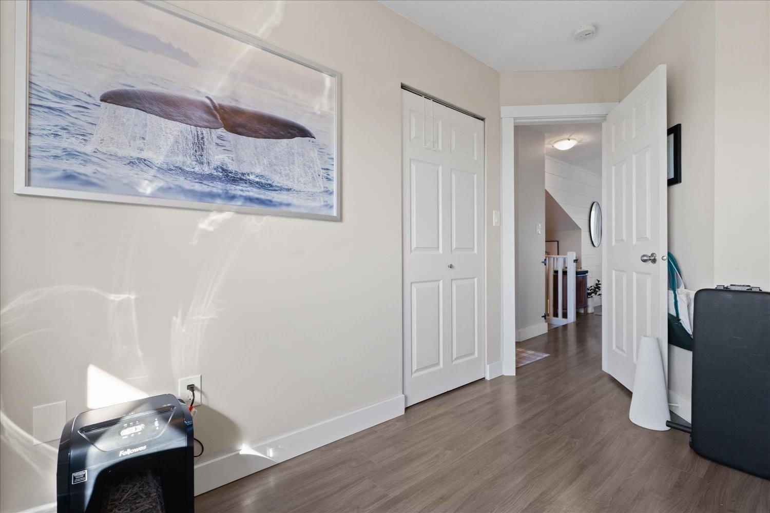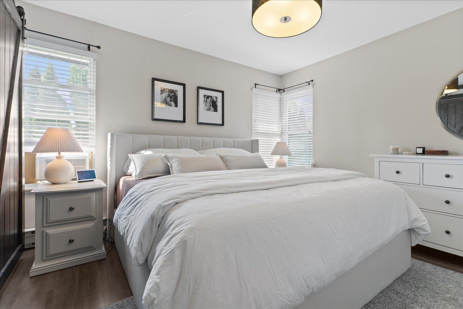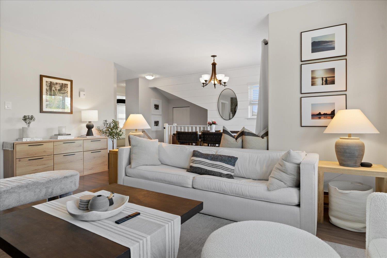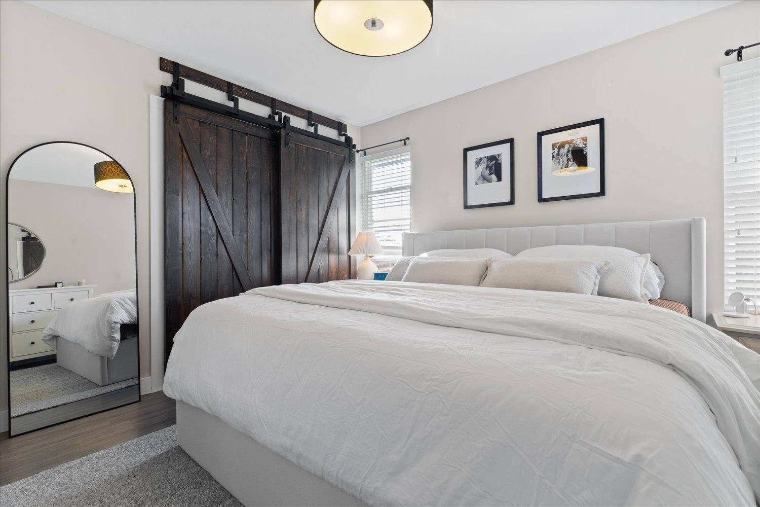 Wow! This beautifully updated upper townhome in sought-after Immel Ridge is move-in ready. Featuring new laminate flooring and plush carpet, this 2-bed/1-bath home blends modern farmhouse style with everyday comfort. Thoughtful touches include barnwood closet doors, a child-friendly safety gate, and a spacious primary bedroom with a custom-organized closet and sliding barn door to the closet. The second bedroom is generously sized and works perfectly as a home office. Enjoy a bright kitchen with newer white cabinetry and stainless steel appliances, plus a large enclosed laundry room with extra storage. Relax on not one, but two balconies - including a dining room walk-out with a view! Pets welcome (1 dog or 1 cat). Currently tenanted paying $2250/month. (id:63510)