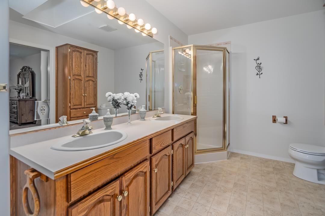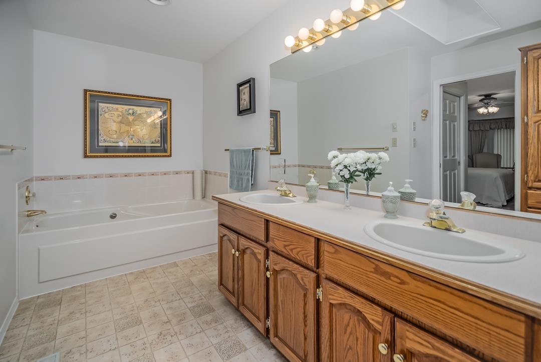 CREEKSIDE PARK on Horn St. - 55+ Age restricted, gated & private complex close to major shopping and stores. Perfectly situated end unit backing onto very private green space.Double enclosed garage and lots of driveway parking. Very clean 3100 sqft rancher style home has a full basement. 3 Bedrooms,3 full washrooms, 2 gas fireplaces and A/C. Rec room, games room, bedroom, over-sized storage area, hobby room and patio area down. Great complex with clubhouse for socializing. Nearby walking trails to enjoy nature. Sorry, no pets allowed. (id:63510)