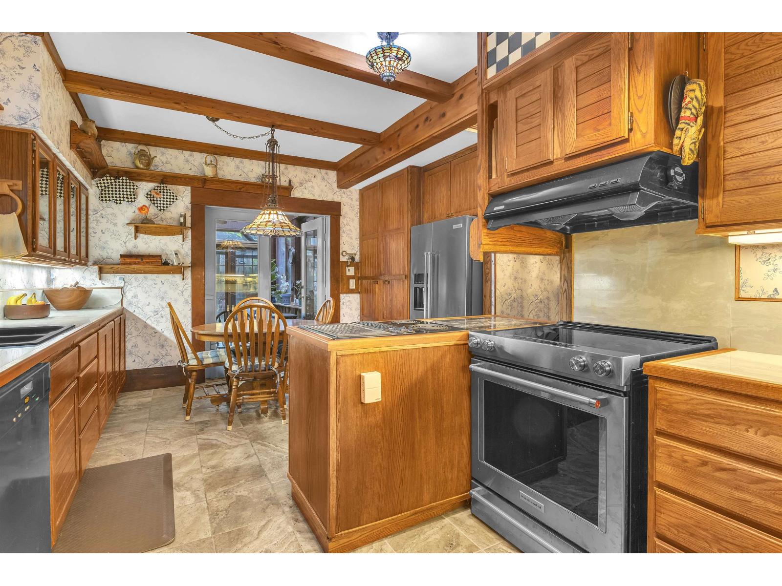 Escape into a world of history, providing an abundance of options! Offering a magical family home, Nothing to do in this ENGLISH COUNTRY character home with private courtyards. Lots of extra details through out. UPPER FLOOR has 4 large bedrms, incl. 2nd P. bdrm. 2 bedrms have French doors to a large sundeck over looking the landscaped grounds. Massive attic, great possibilities. MAIN FLOOR has a ton of character! Living room with original F.P. English charm updated kitchen w/solarium, and it opens to a private fenced courtyard. Huge familyRm full bathrm. was primary bedrm. Easily a primary bedrm again. Massive new detached double garage with SHOP above & in back of garage! Located in peaceful village only min out of town. Wonderful quiet area, enjoy flat roads & walking trails (id:63510)