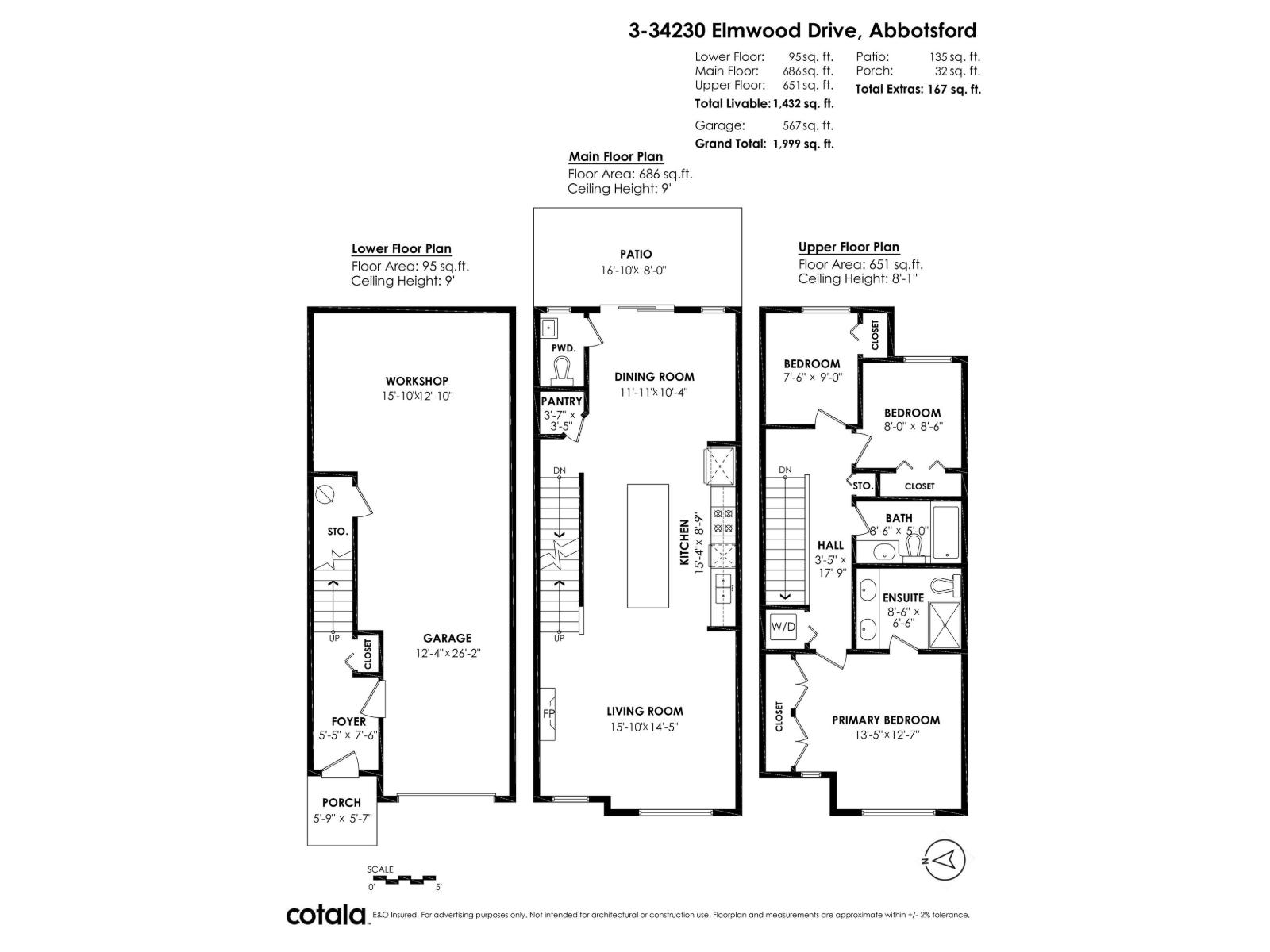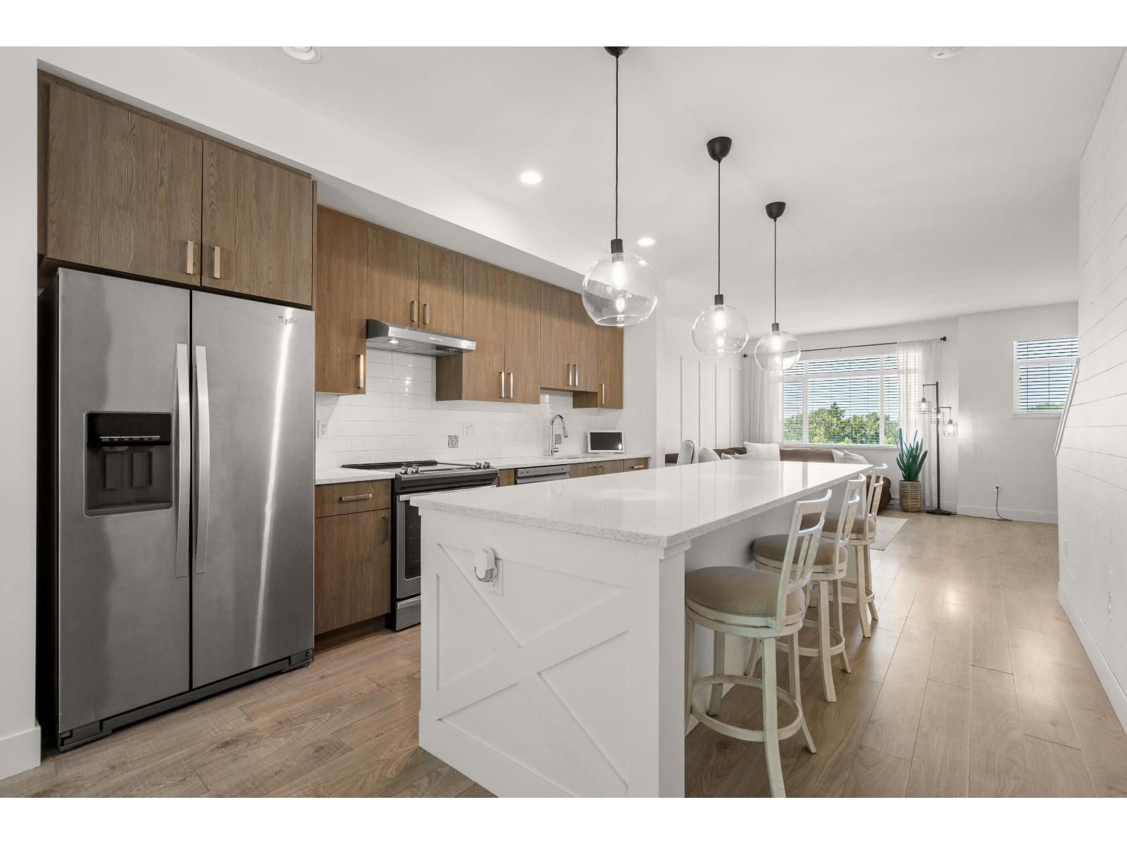 OPEN HOUSE Saturday, Oct 25th from 12-2pm!!! Modern 3-storey townhome is located in East Abbotsford's highly sought after Ten Oaks Development by Pacific Hills. Bright, light & fresh with a spacious Open Floorplan, high ceilings, & unobstructed views from the living room & massive kitchen island. The top level has all 3 bedrooms, making sure you have enough room for the whole family; a MUST in this SUPER Family Friendly complex! Walk out of your dining room, and enjoy evening BBQs in your semi-private backyard with a grassed area for kids & pets to utilize safely. Out front is your Driveway, and a Double Tandem Garage that can be partially converted to be a workshop, flex-room, or workout area. All this ONLY minutes from shopping and all 3-levels of school. LOW Strata Fees! (id:63510)