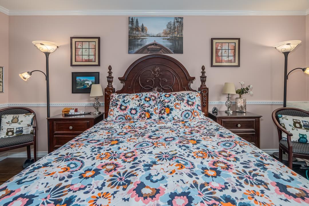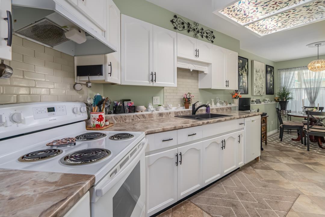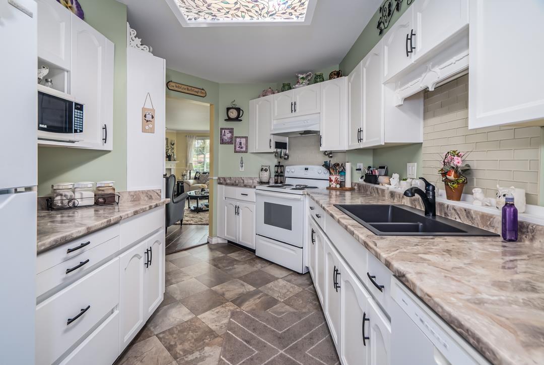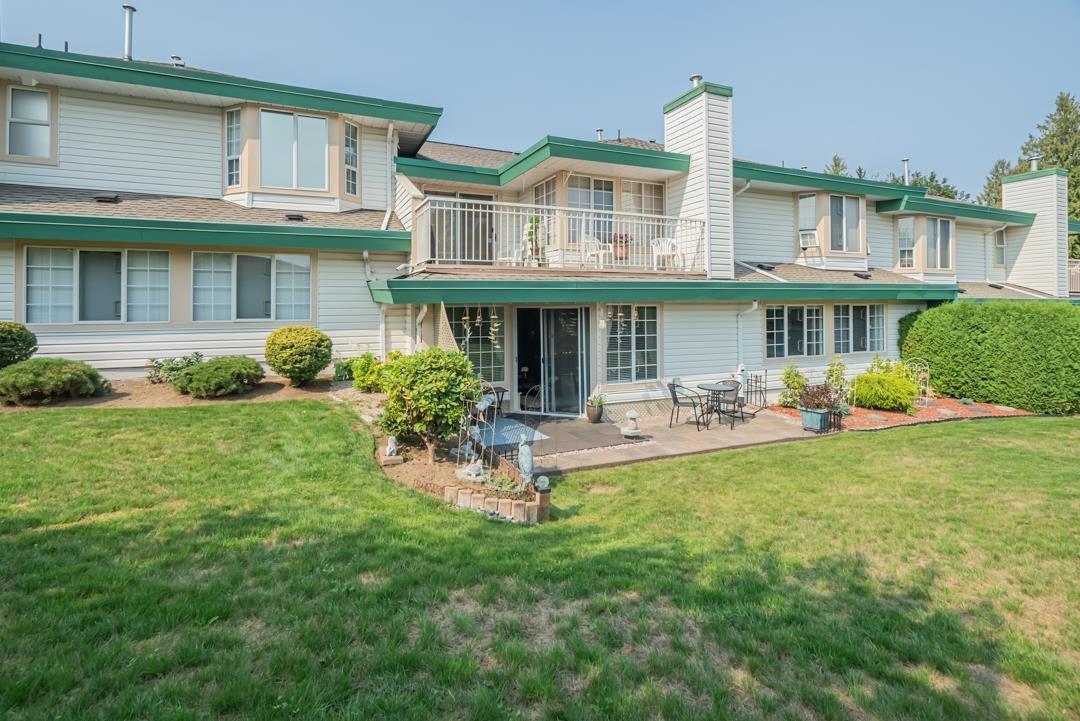 LOCATED in the highly sought-after CEDARBROOK VILLAGE, this charming ground-level, 1-storey townhome offers the perfect blend of convenience and comfort. Situated in a prime location close to shopping, dining, hospital and transit. Originally the show home, it features 2 bedrooms, 2 bathrooms, and a bright white kitchen with updated countertops, newer laminate flooring. The living room has a cozy gas fireplace, and the front and back patios offer a wonderful outdoor space, with the back patio overlooking a private common yard. Located in a well-maintained complex, it's perfect for those seeking a stair-free, low maintenance lifestyle. 55 plus complex. Replaced hot water heater 2023, new pressure regulating valve June 2024,New roofs being done. This home is ready to move into. (id:63510)