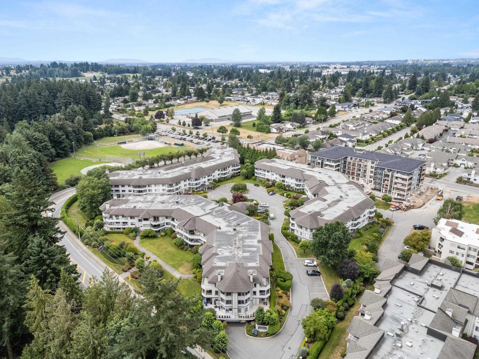 Welcome to Centennial Court, one of Abbotsford's most sought after 55+ communities! This bright, move-in ready two bedroom, two bathroom condo offers over 1,200 sq. ft. of spacious living on the sunny south side. Enjoy a private patio, a large primary bedroom with ensuite, and a rare full-size laundry room with extra space for storage. Residents here love the fantastic amenities, including an indoor pool, hot tub, gym, and woodworking shop, along with the friendly, welcoming atmosphere. Take daily walks around Mill Lake, which is just steps away! Also situated only minutes from Sevenoaks Mall, Abbotsford Hospital, and all major amenities. The is the perfect blend of comfort, convenience, and community. Call today to book your own private showing! (id:63510)