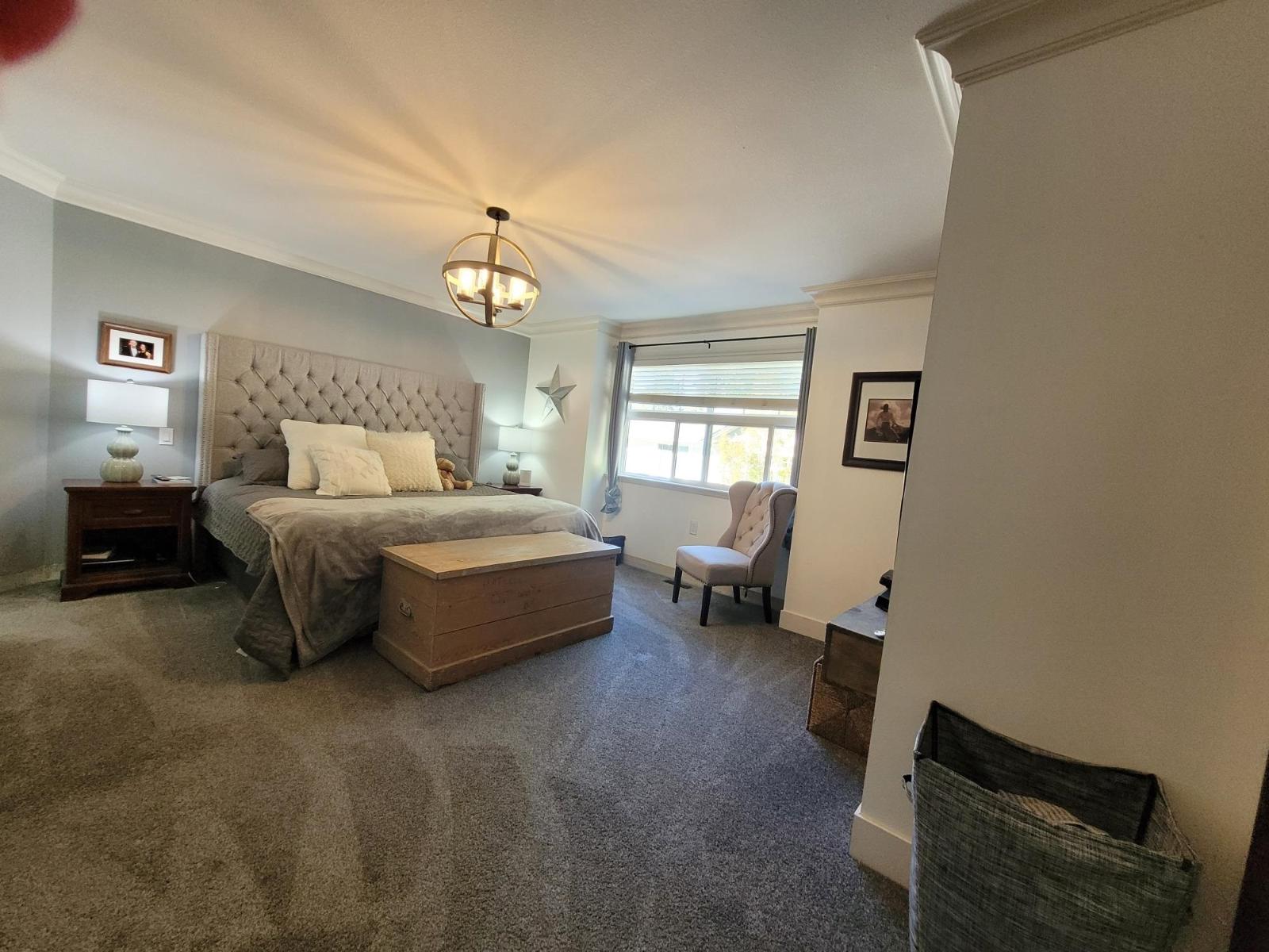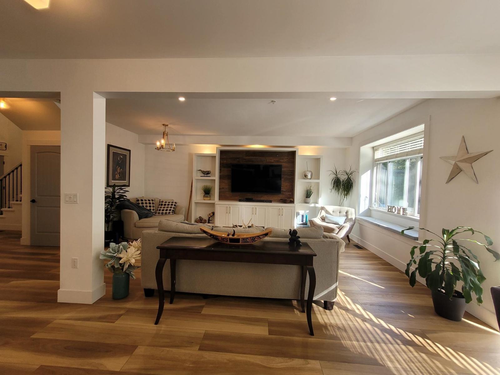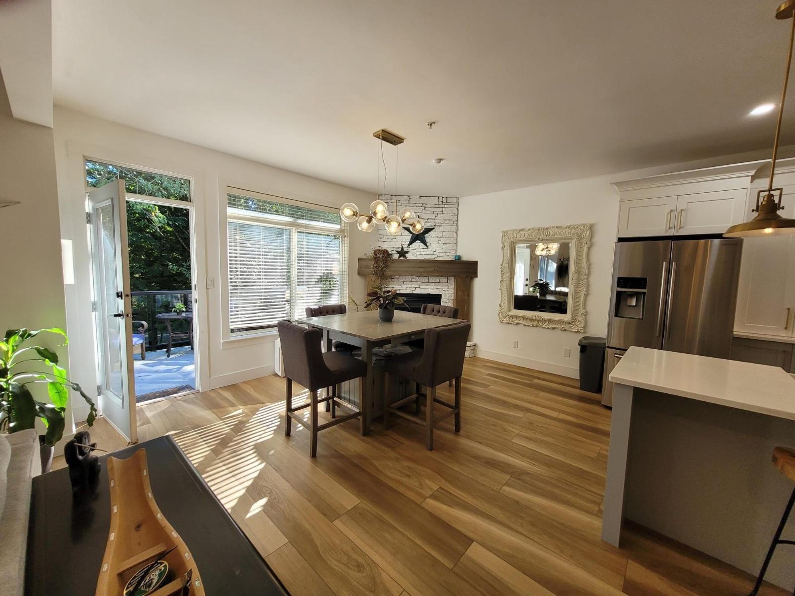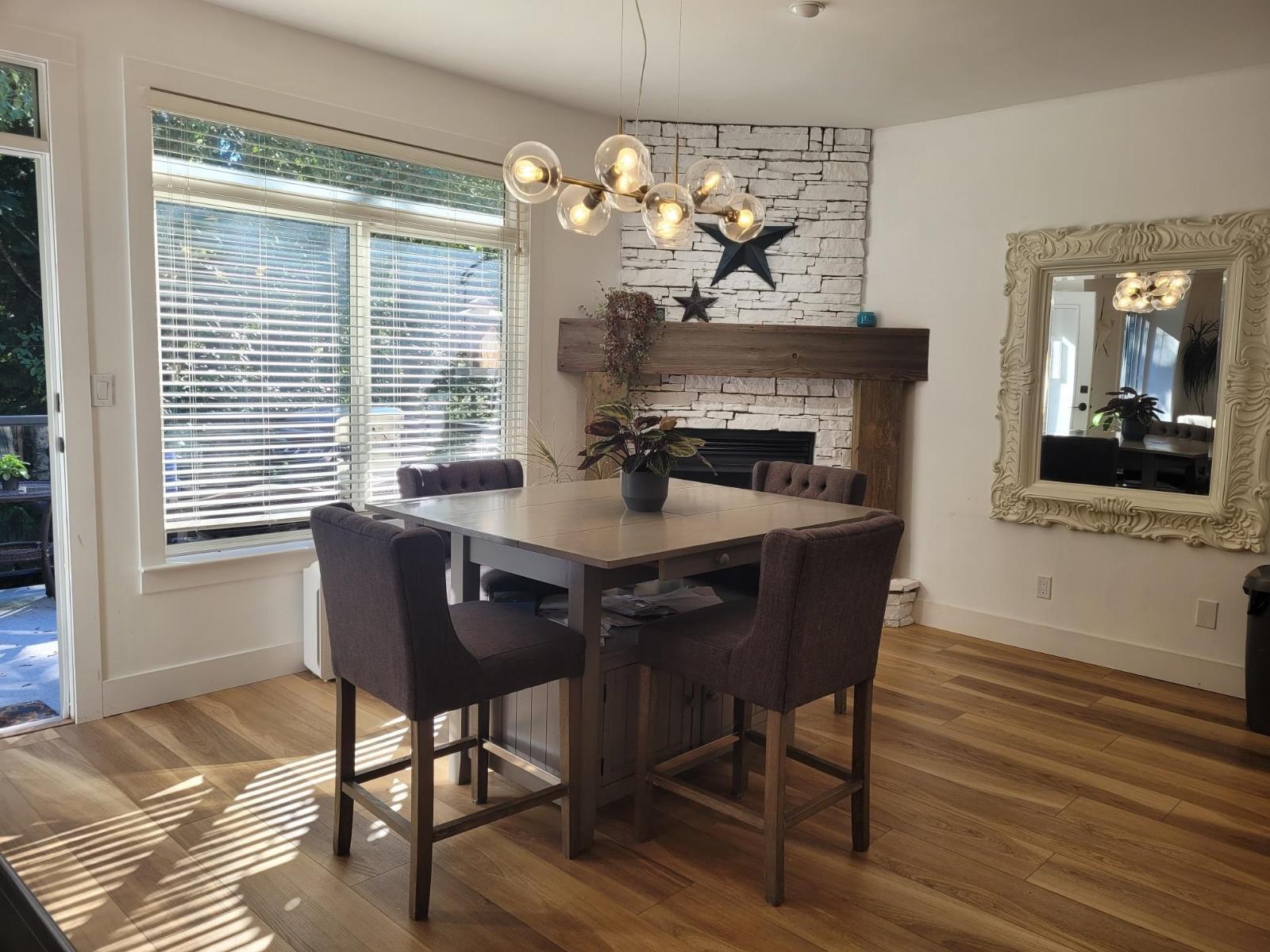 Kings Gate is East Abbotsford best kept secrets. Quiet private peaceful treed setting. Lovely updated main floor living area with view that overlooks nature and trees. Entertain your guests in the open concept living room, kitchen, island with sink, dining area & feature fireplace wall. Stainless appliances & loads of cupboards. Spacious upper level offers grand primary suite, walk in closet and spa like ensuite plus 2 family bedrooms. Lower level entertainment room with wet bar feature wall for movie nights, newly built bedroom, laundry & part finished bathroom. Hot water on demand, A/C. Gated complex close to Ledgeview Golf Course. Your family will love living in this upscale townhouse. No age restrictions and pets welcome. (id:63510)