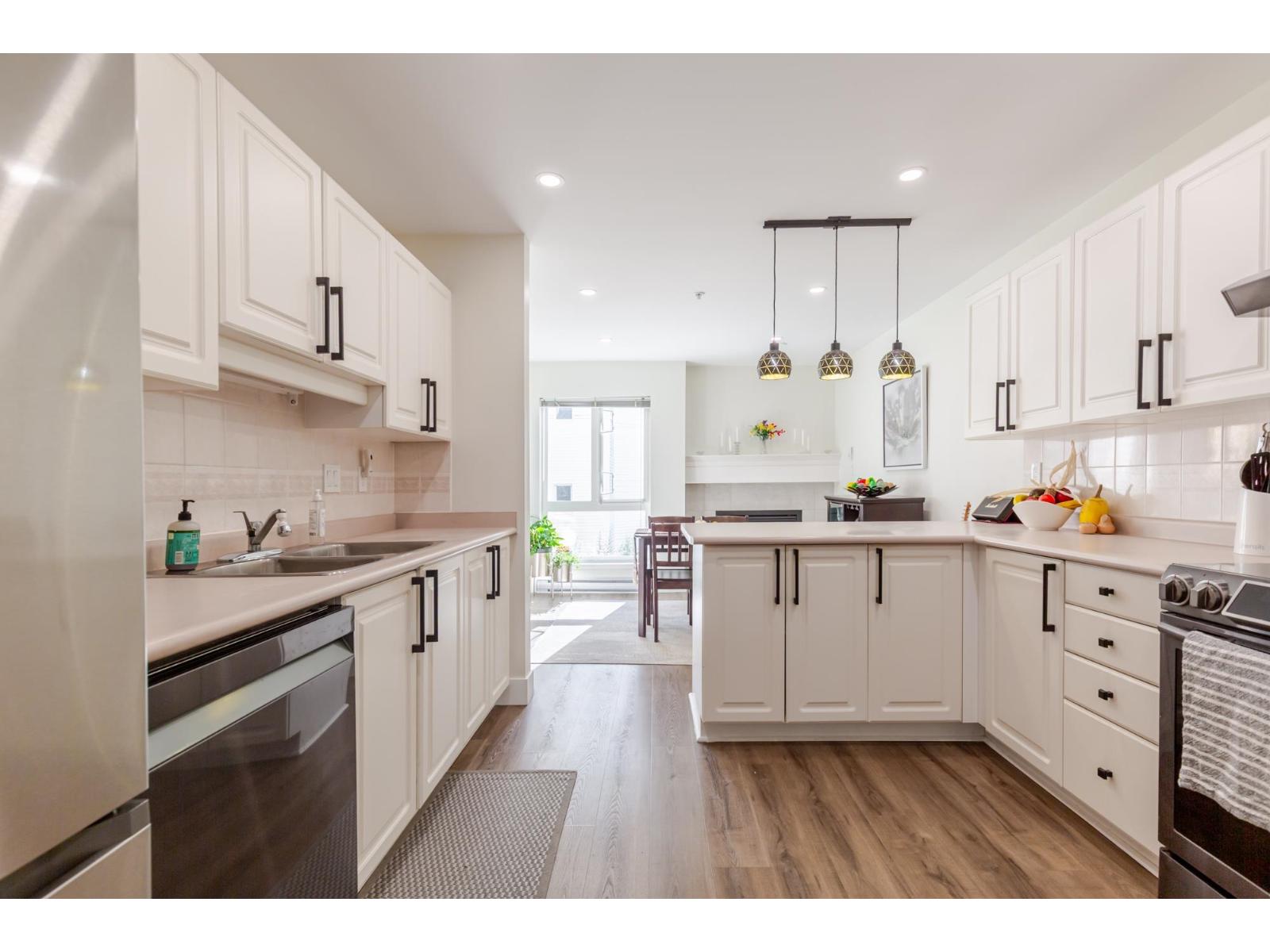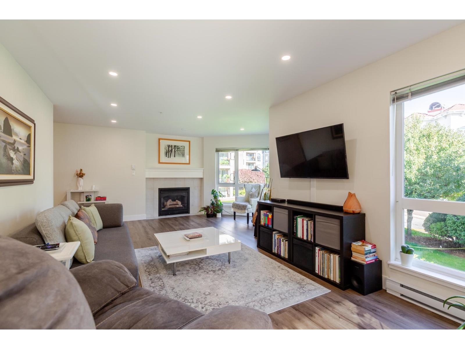 BRIGHT & SPACIOUS 2 bed and 2 bath CORNER unit in the highly regarded Regency Park! Nearly 1,400 sq ft with NE exposure, featuring stainless steel appliances, 2 gas fireplaces, laminate flooring, recessed lighting, and generous storage. Enjoy peaceful living set back from the bustle, yet close to shops, transit, and walking trails. Resort-style amenities include an indoor pool, hot tub, rec centre, guest suites, gym, dog area, EV charging, and workshop. Includes 1 parking stall and storage locker. Pet friendly with no age restrictions! (id:63510)
