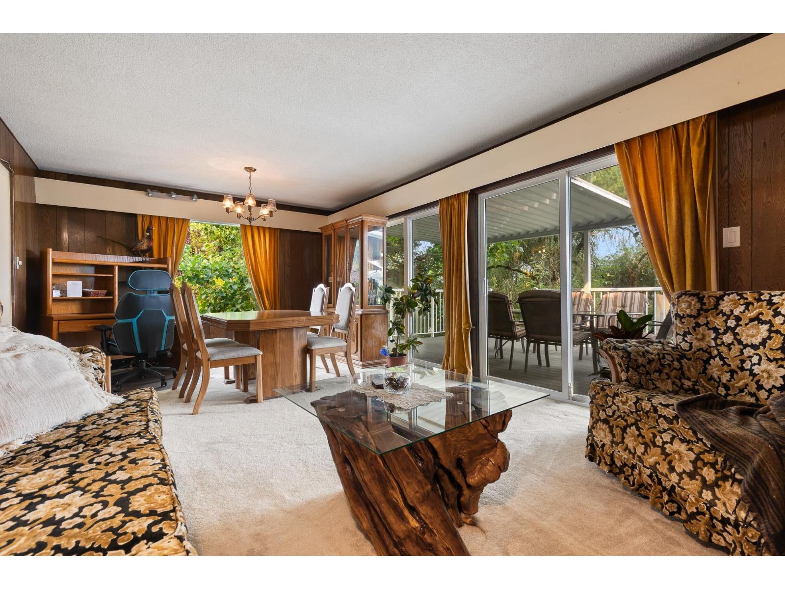 10,500 sf corner lot in East Abbotsford! Lovingly cared for the same owner over the last 45 years, this home features a spacious & bright 2 bed, 1 bath main level, and 1 bedroom, 1 bath WALK-OUT basement with tons of storage (easily suiteable!). Updated windows, furnace and (huge) covered deck (roughly 2010). Stunning views, mature trees, double carport (1/2 enclosed w heat), ample parking (including room for RV). Centrally located close to transit, all levels of schools, shopping, amenities and just steps to Discovery trail. Call today! (id:63510)