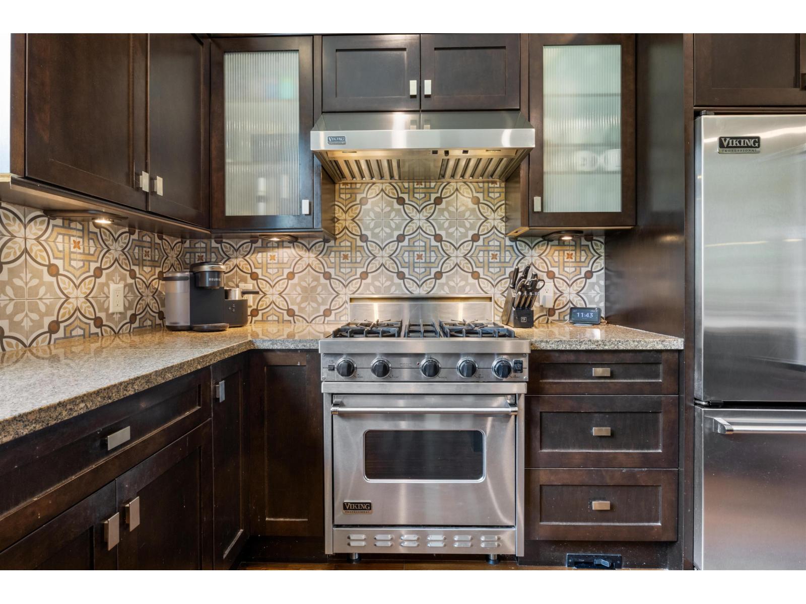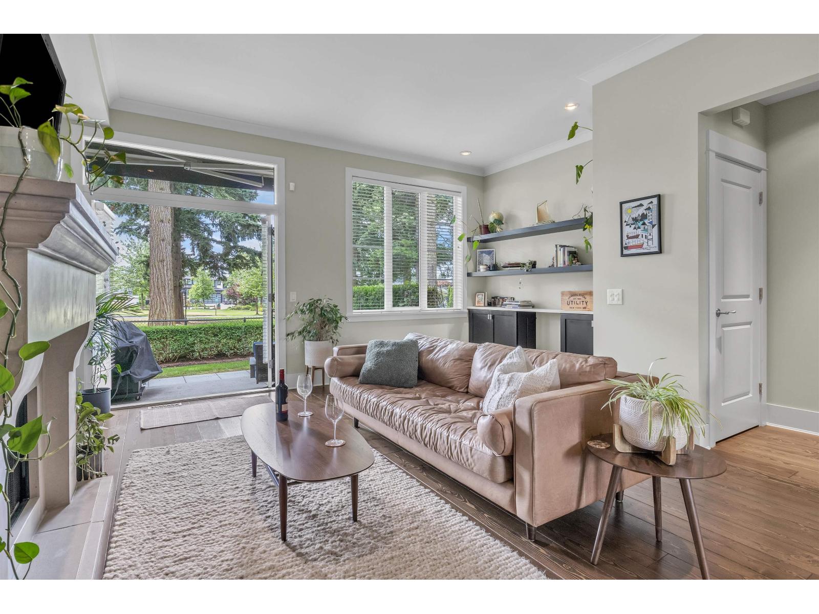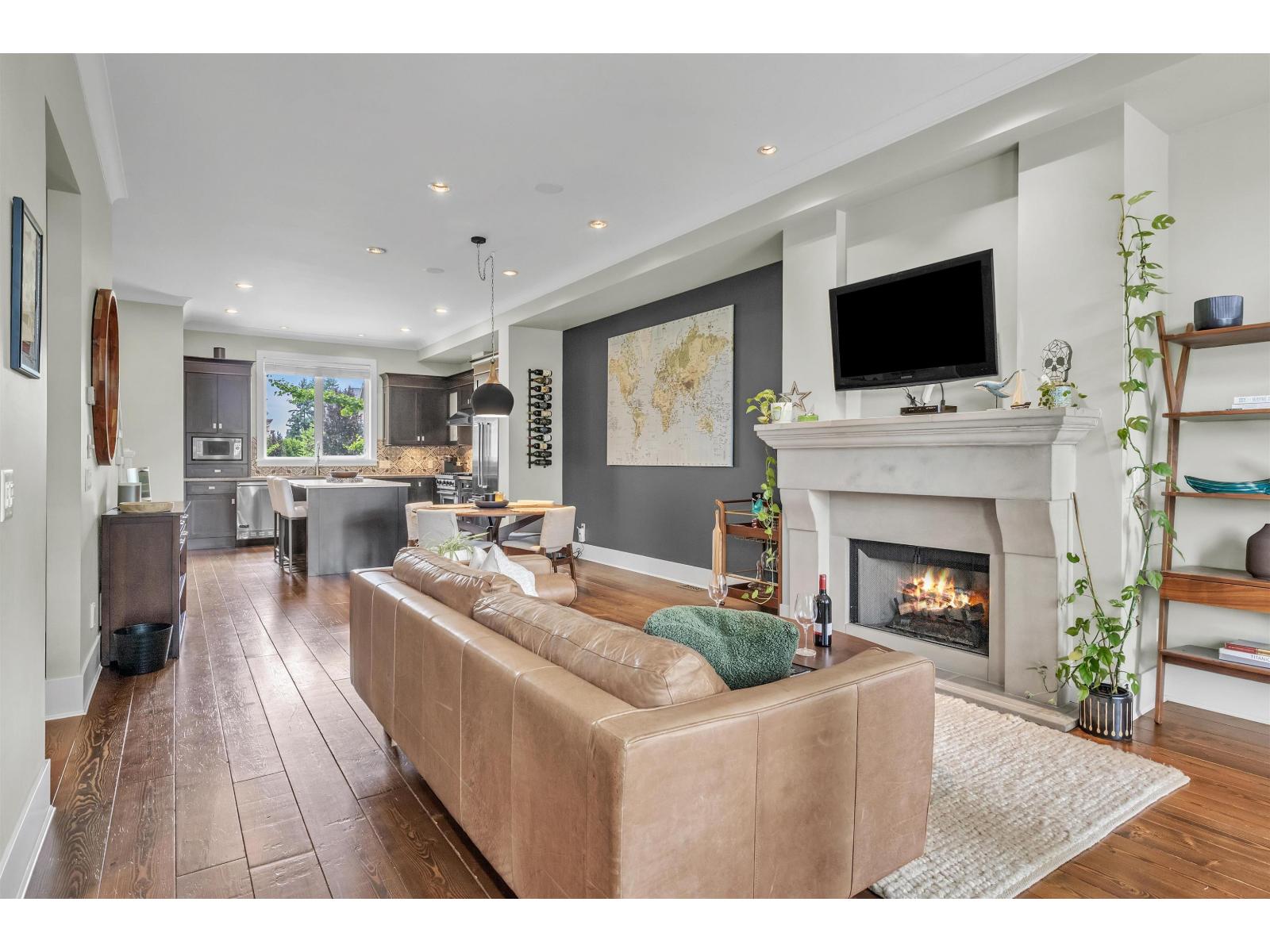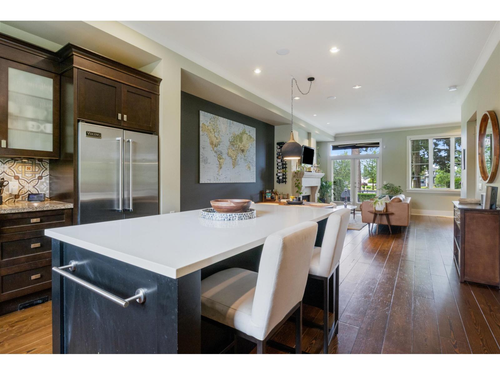 "BROWNSTONE" A LUXURY townhouse that Rarely come available for sale. Quality built by Rick Voth. This one backs onto a beautiful park! MAIN FLOOR: 10'ceilings, hardwood floors, large dream kitchen, with island, eating bar, granite & quartz counters, gas stove. Large dining area, Living room with gas F.P., dry bar area & opens to the ground level backyard. You'll love the outside living area, great view. UPPER FLOOR; 9' ceilings, 3 bedrooms, Primary BedRm is huge, W/I closet & 5 pc ensuite with heated floors. LOWER LEVEL: Large flex room great for Media, office, fitness or 4th bedroom. Central A/C, gas fireplace, B/I vacuum, security, 40 year roof, guest parking. Meticulously maintained gated complex. Walking distance to grocery stores, malls, recreation, only minutes to all the amenities (id:63510)