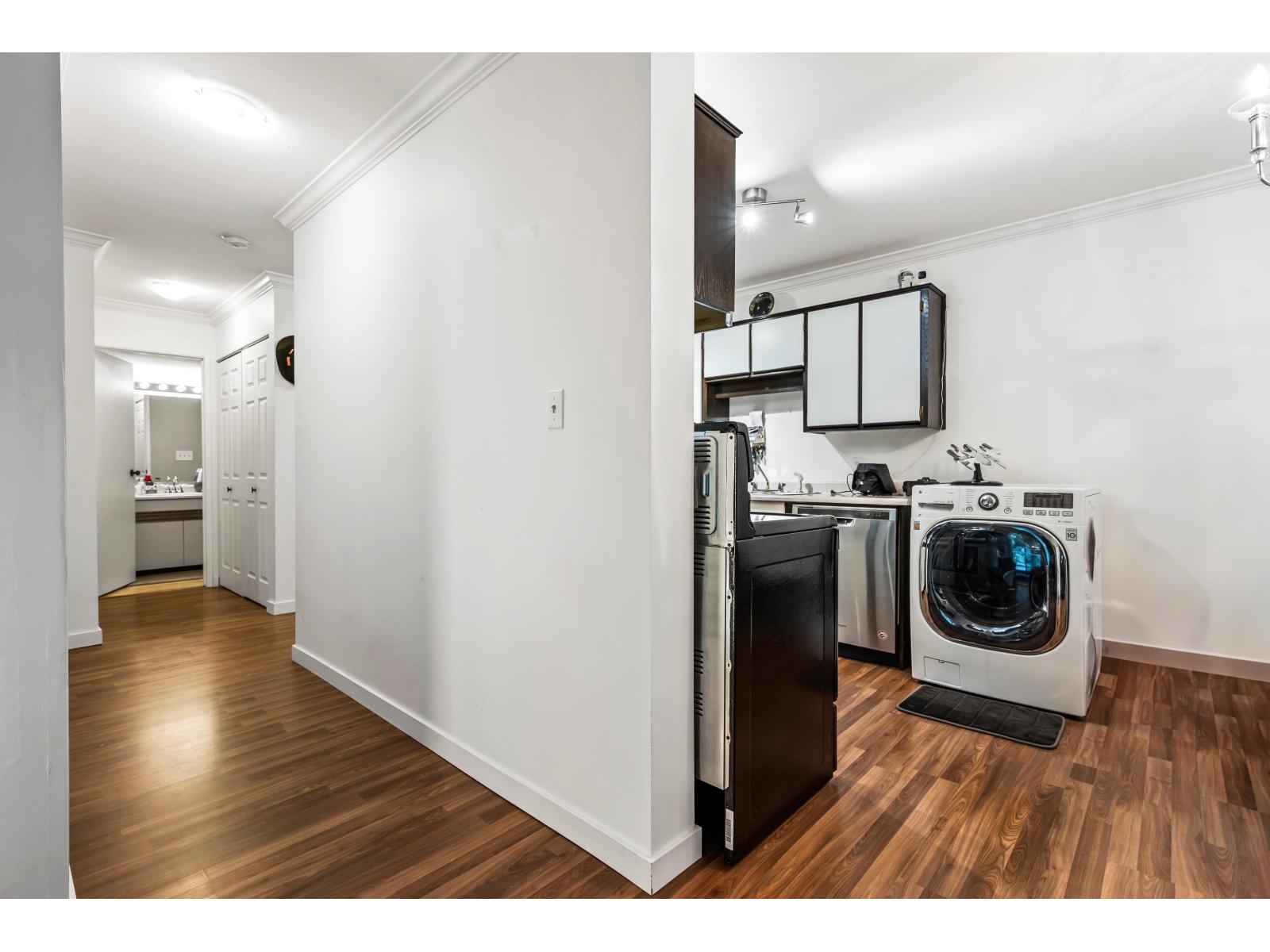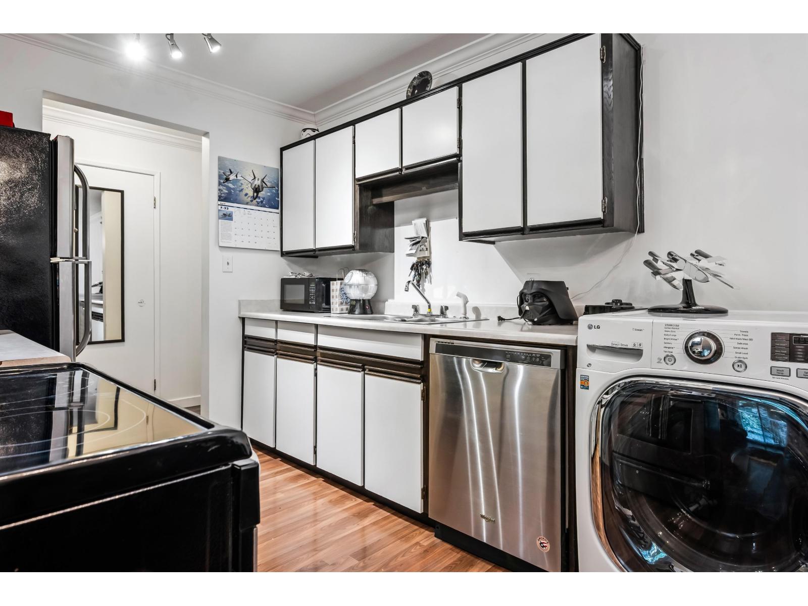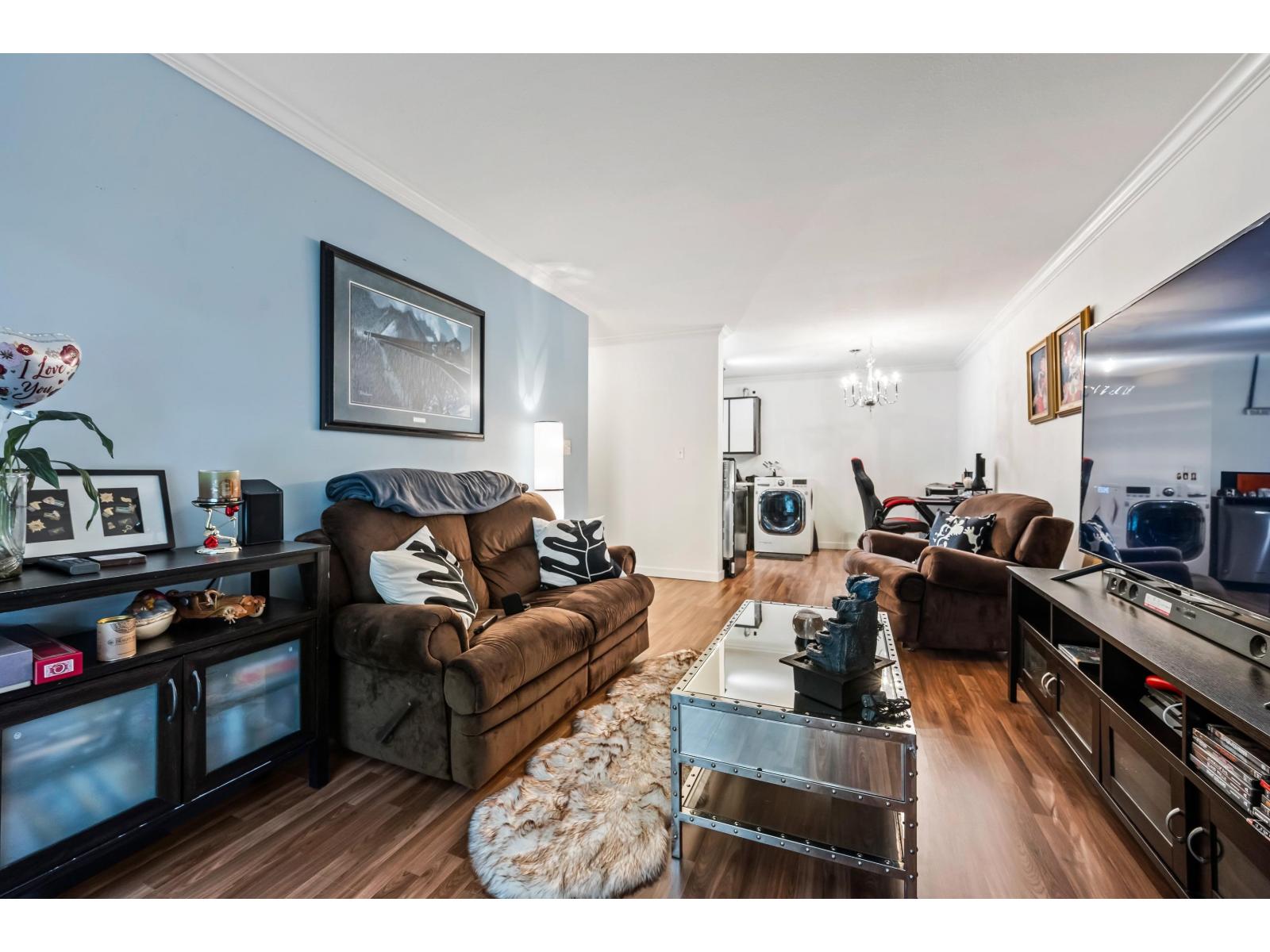 Welcome to Victoria Court, a charming two-bedroom, one-bathroom condo located on a quiet cul-de-sac in desirable West Abbotsford. Situated on the peaceful side of the building, this home offers comfort and convenience with features such as a combo washer/dryer unit, cozy gas fireplace, covered balcony, crown molding, and a private storage room. A rare bonus includes two parking stalls-one covered and one open. Victoria Court is a well-managed, pet-free building that allows all ages and rentals, making it a great opportunity for first-time buyers or a valuable addition to any rental portfolio. This home is definitely worth a look! (id:63510)