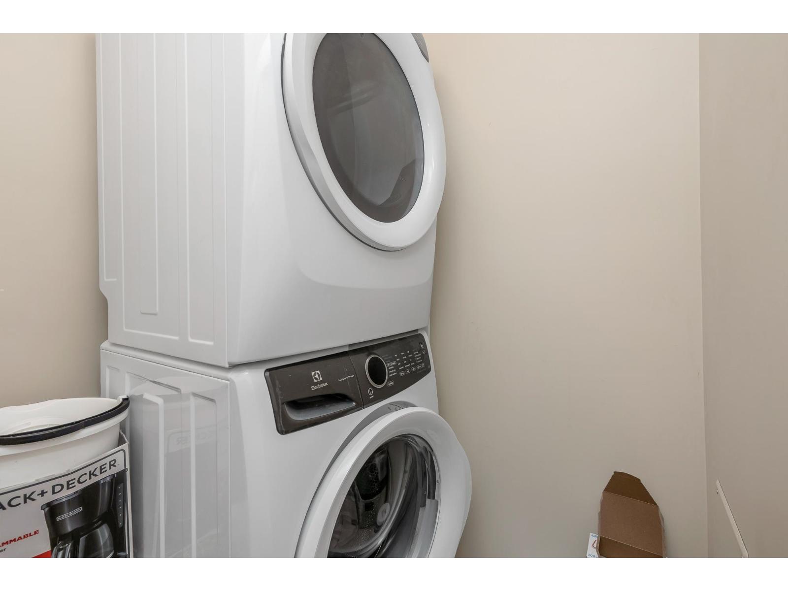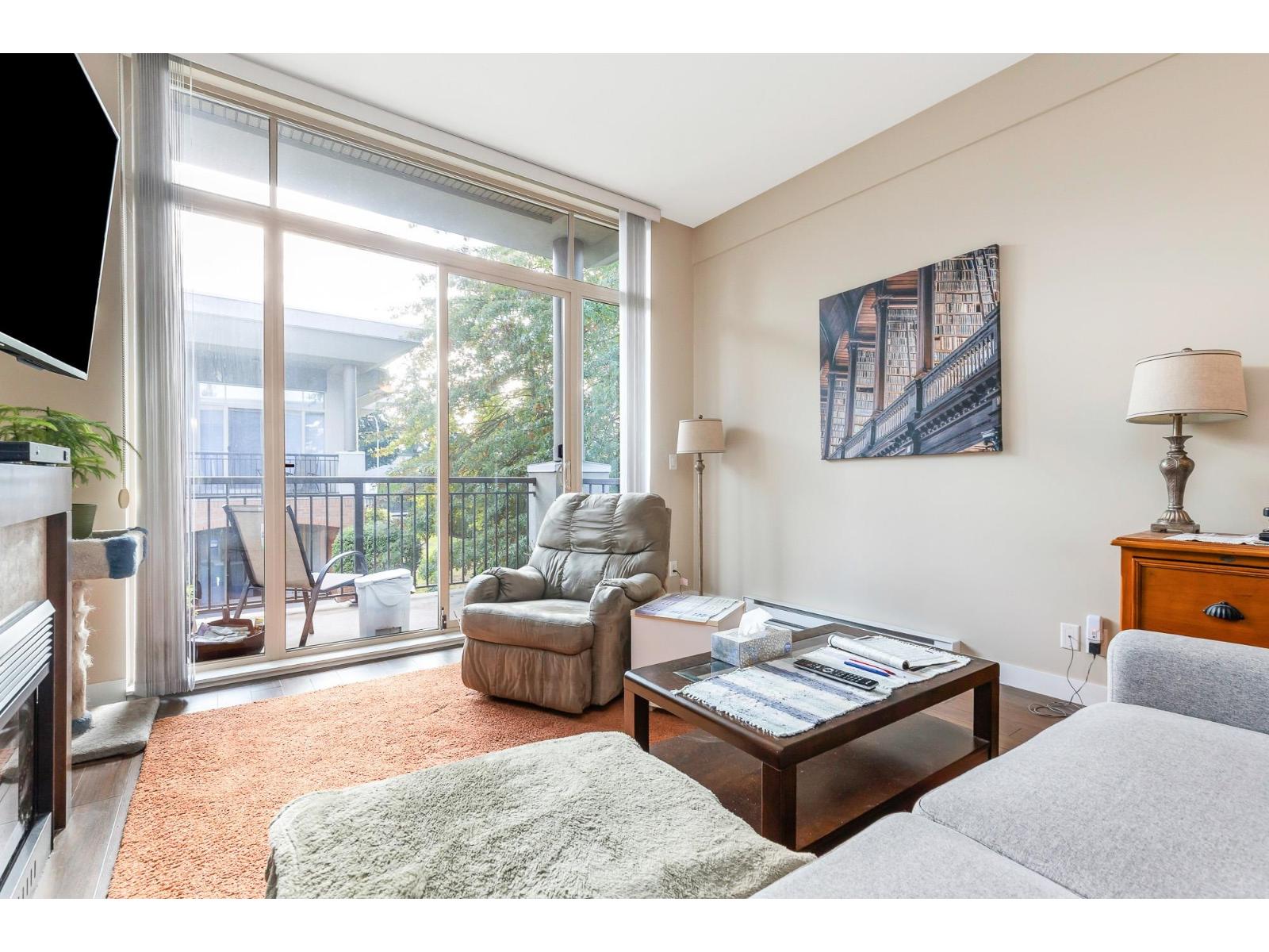 Welcome home to TEMPO. This lovely 2nd floor corner condo is also the top floor with access to the roof top patio above! High ceilings and loads of natural light. Best location in the development overlooking the courtyard. The primary bedroom will fit a king size bed and the den is also spacious with a window. Located in Central Abbotsford is walking distance to shopping, restaurants and easy access to Highway 1. 1 dog or 1 cat allowed. Great opportunity for first time a home buyer!! (id:63510)