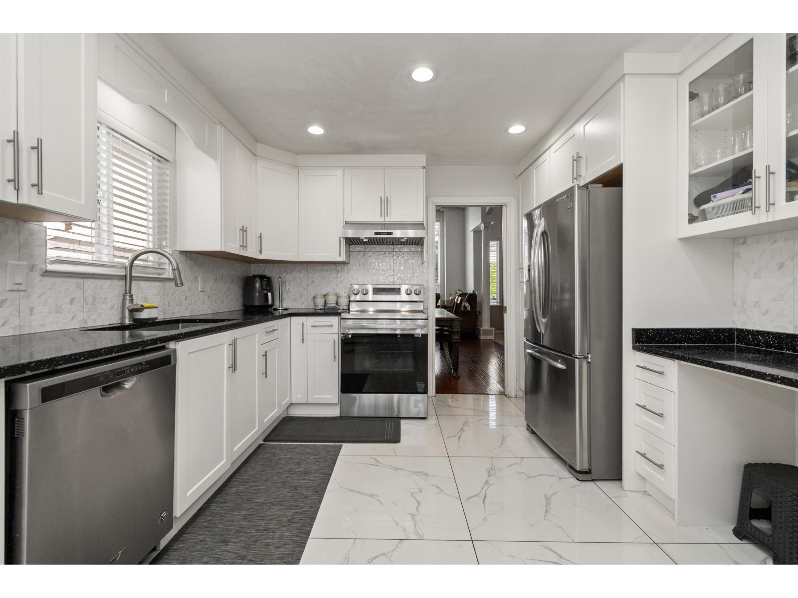 Custom, Uniquely Styled Home Just Steps from All Level Schools. This spacious home offers an open-concept layout with high ceilings and an abundance of natural light through large windows. The newly renovated kitchen features sleek quartz countertops and updated bathrooms. Upstairs, you'll find four generously sized bedrooms, including two master suites, and a total of five full bathrooms. The property also includes a fully legal suite - ideal for extended family or rental income. Enjoy an extra-wide driveway and a fully paved backyard, perfect for low-maintenance summer entertaining. OPEN HOUSE OCT. 19 SUN. 1-3PM (id:63510)