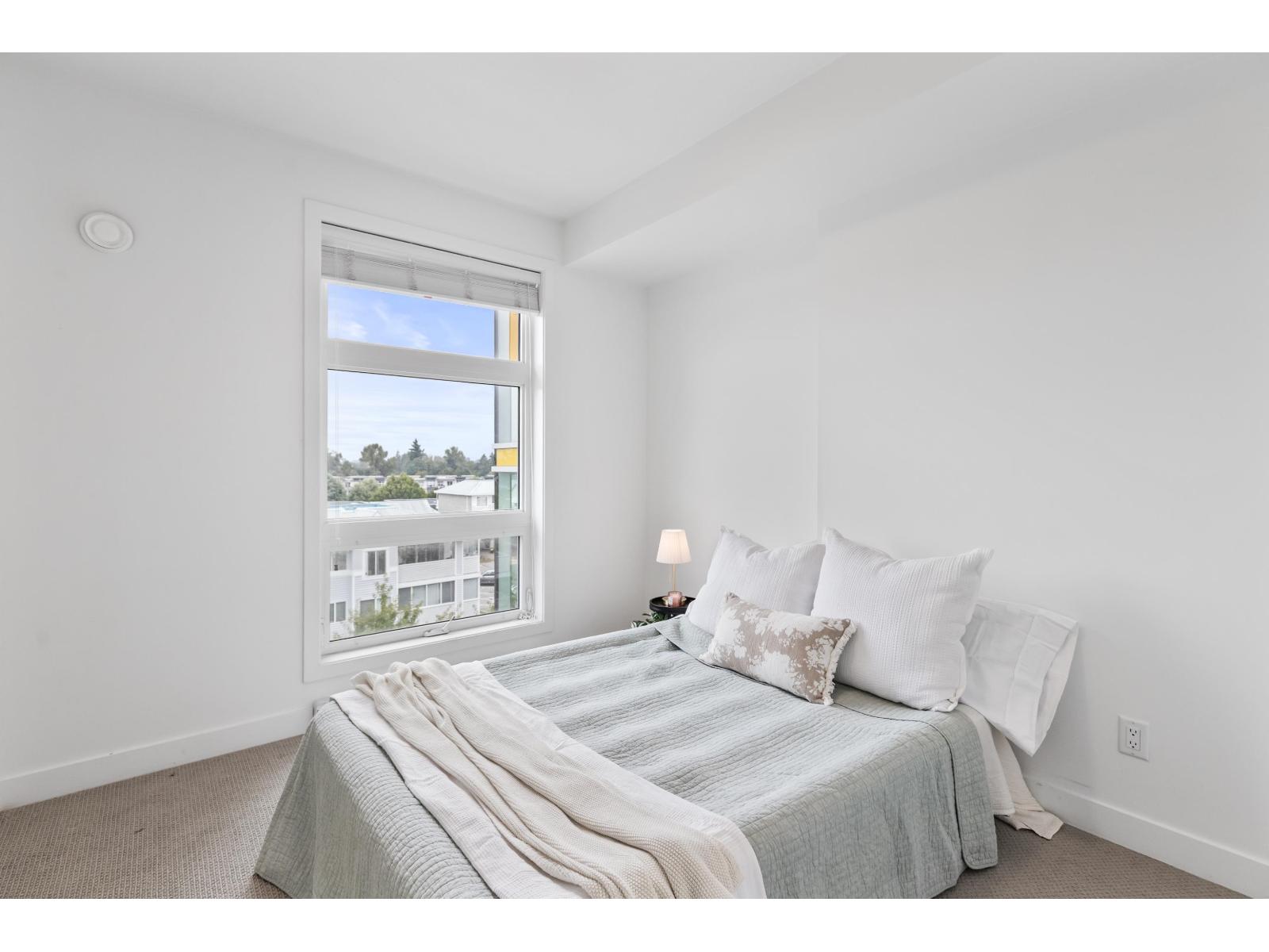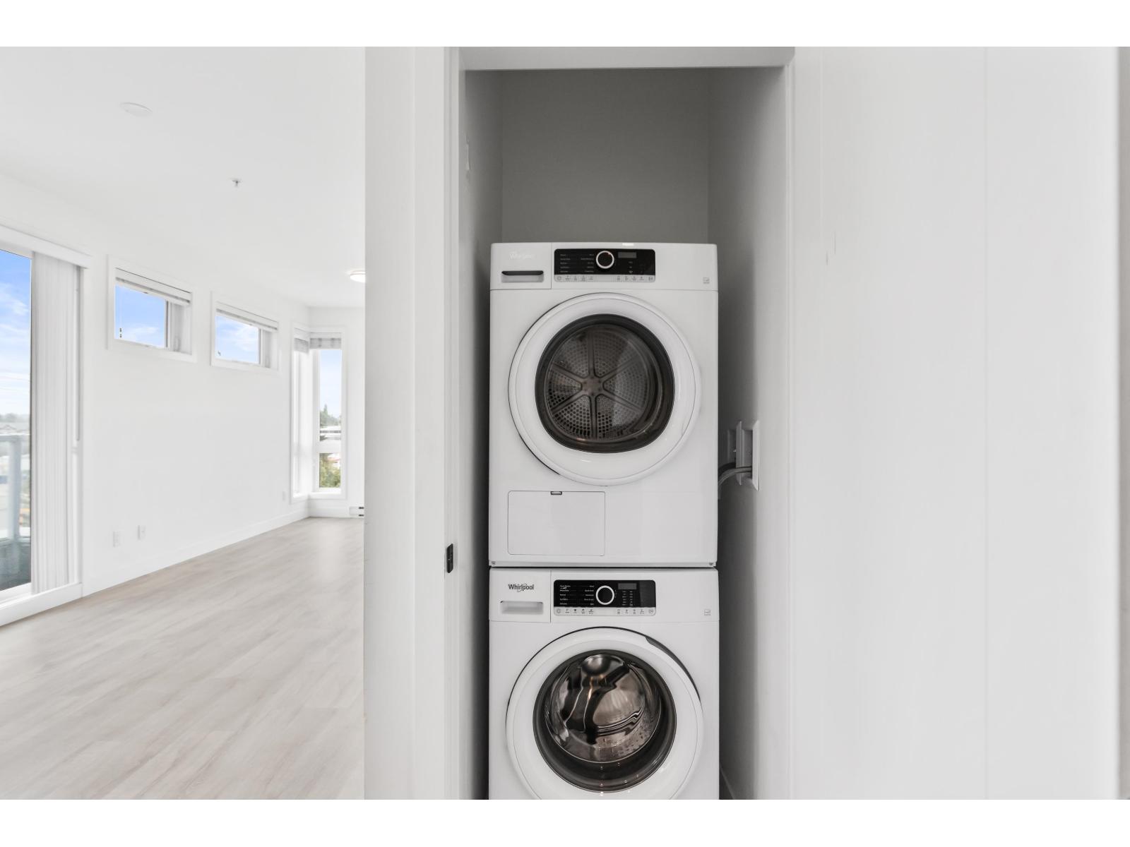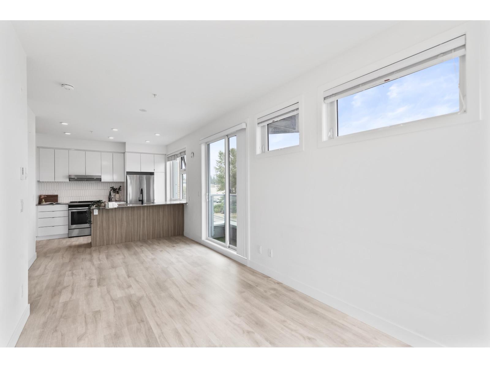 Light-filled and stylish, this Scandinavian-inspired corner condo pairs contemporary design with a prime location. Wide-plank floors and large windows flood the space with natural light, while a Juliette balcony adds fresh air. The kitchen shines with Fisher & Paykel + Whirlpool appliances, quartz counters, and an eating bar. Enjoy in-suite laundry, a versatile pantry/closet, spacious entry, and a quality primary closet organizer. COURT WEST allows 2 pets and offers a massive courtyard with movie nights, shared EV chargers, secure bike room, 1 parking stall, and a large locker-steps to Seven Oaks Mall, Superstore, Trading Post Brewing, Cora's, transit, and minutes to Mill Lake Park. QUICK COMPLETION POSSIBLE (id:63510)