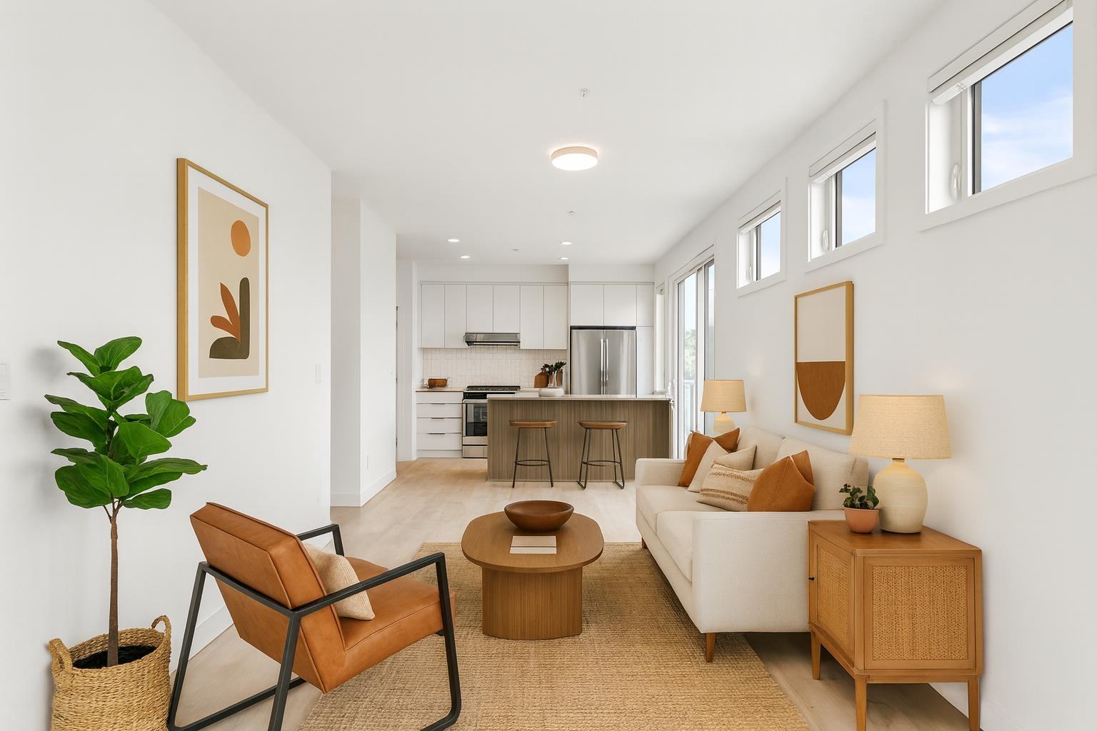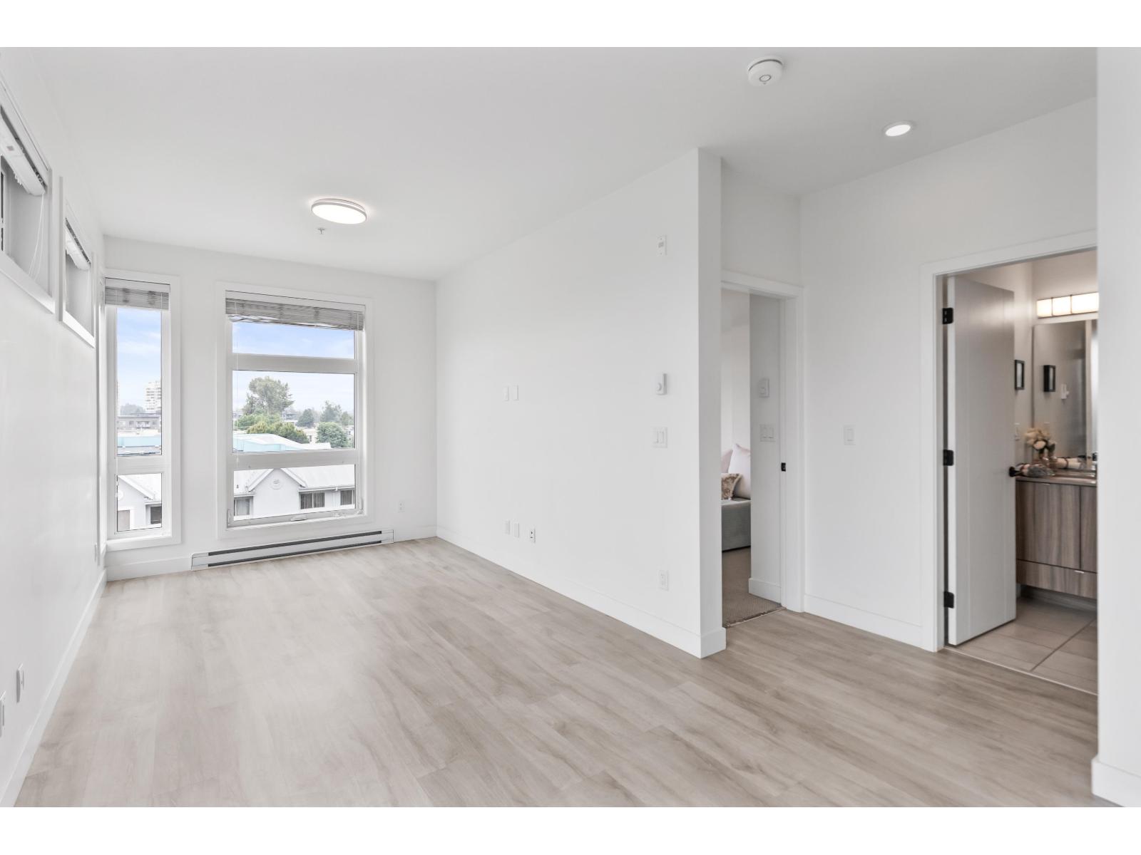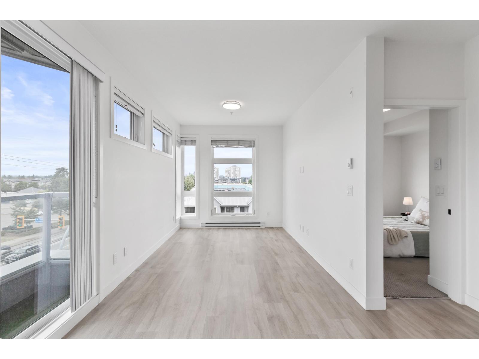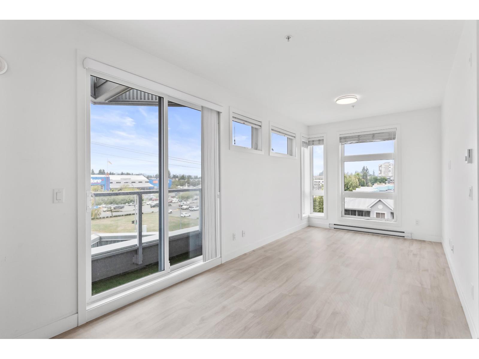 Light-filled and stylish, this Scandinavian-inspired corner condo pairs contemporary design with a prime location. Wide-plank floors and large windows flood the space with natural light, while a Juliette balcony adds fresh air. The kitchen shines with Fisher & Paykel + Whirlpool appliances, quartz counters, and an eating bar. Enjoy in-suite laundry, a versatile pantry/closet, spacious entry, and a quality primary closet organizer. COURT WEST allows 2 pets and offers a massive courtyard with movie nights, shared EV chargers, secure bike room, 1 parking stall, and a large locker-steps to Seven Oaks Mall, Superstore, Trading Post Brewing, Cora's, transit, and minutes to Mill Lake Park. QUICK COMPLETION POSSIBLE (id:63510)