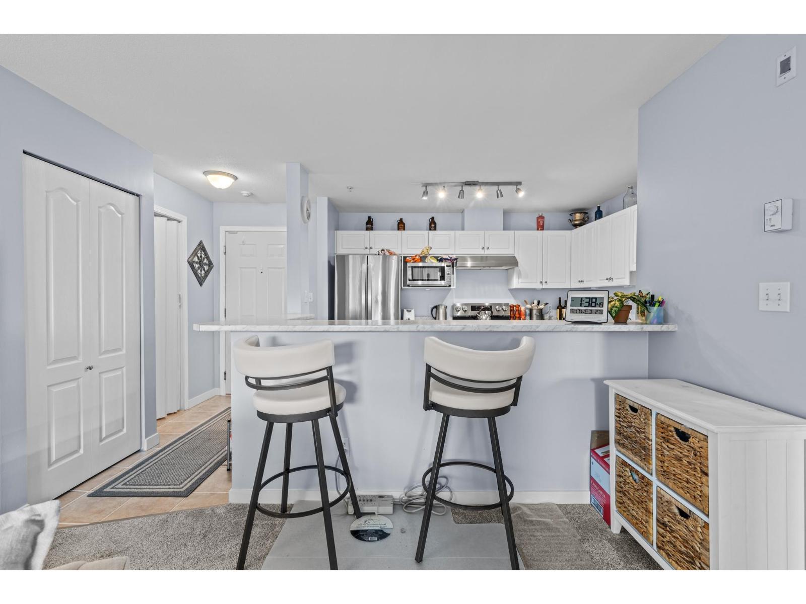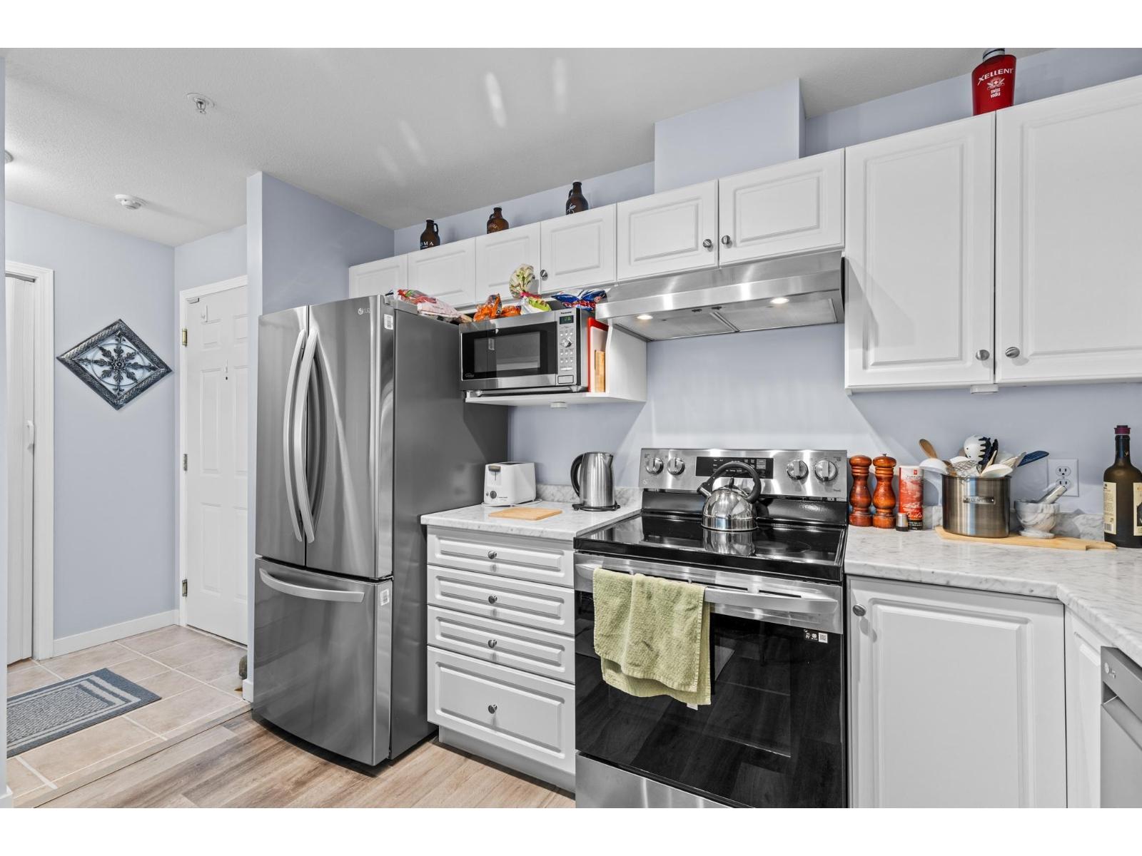 Attractive 2-bedroom, 2-bathroom top floor condo. Features include a gas fireplace, S/S appliances, 2 underground parking spaces, updated toilets, bathroom fans, newer flooring, in suite laundry, updated décor There are a Guest Suite, Exercise & amenities rooms. The deck offers a great place for morning coffee, barbeques and watching sunsets. Walking distance to UFV, the Abbotsford Event Center, elementary school, Browne's Social House, Starbucks, MacDonalds and Wendy's. The Regional Hospital , Costco , Home depot & Walmart are close by. No age restrictions. Pets permitted with restrictions- (dogs of any size welcome). GAS & HOT WATER included in strata fee. Easy freeway access. Please call to arrange a viewing. (id:63510)