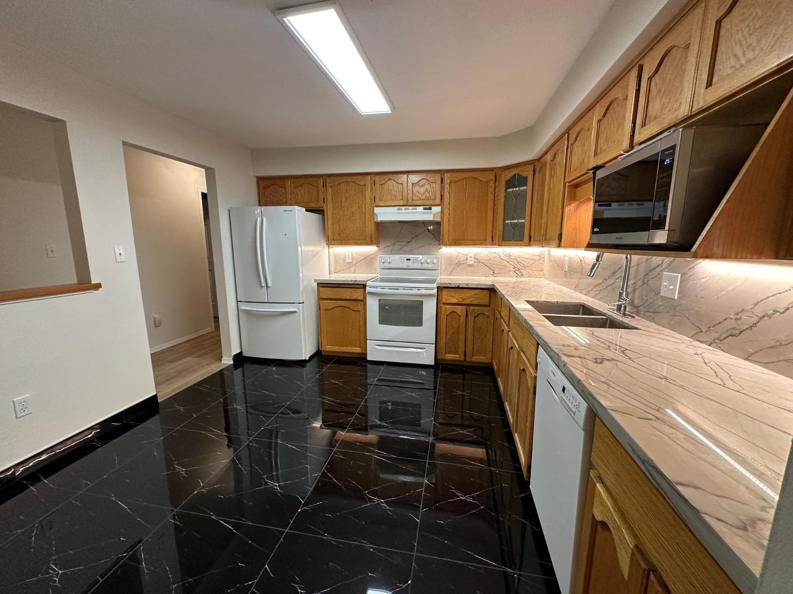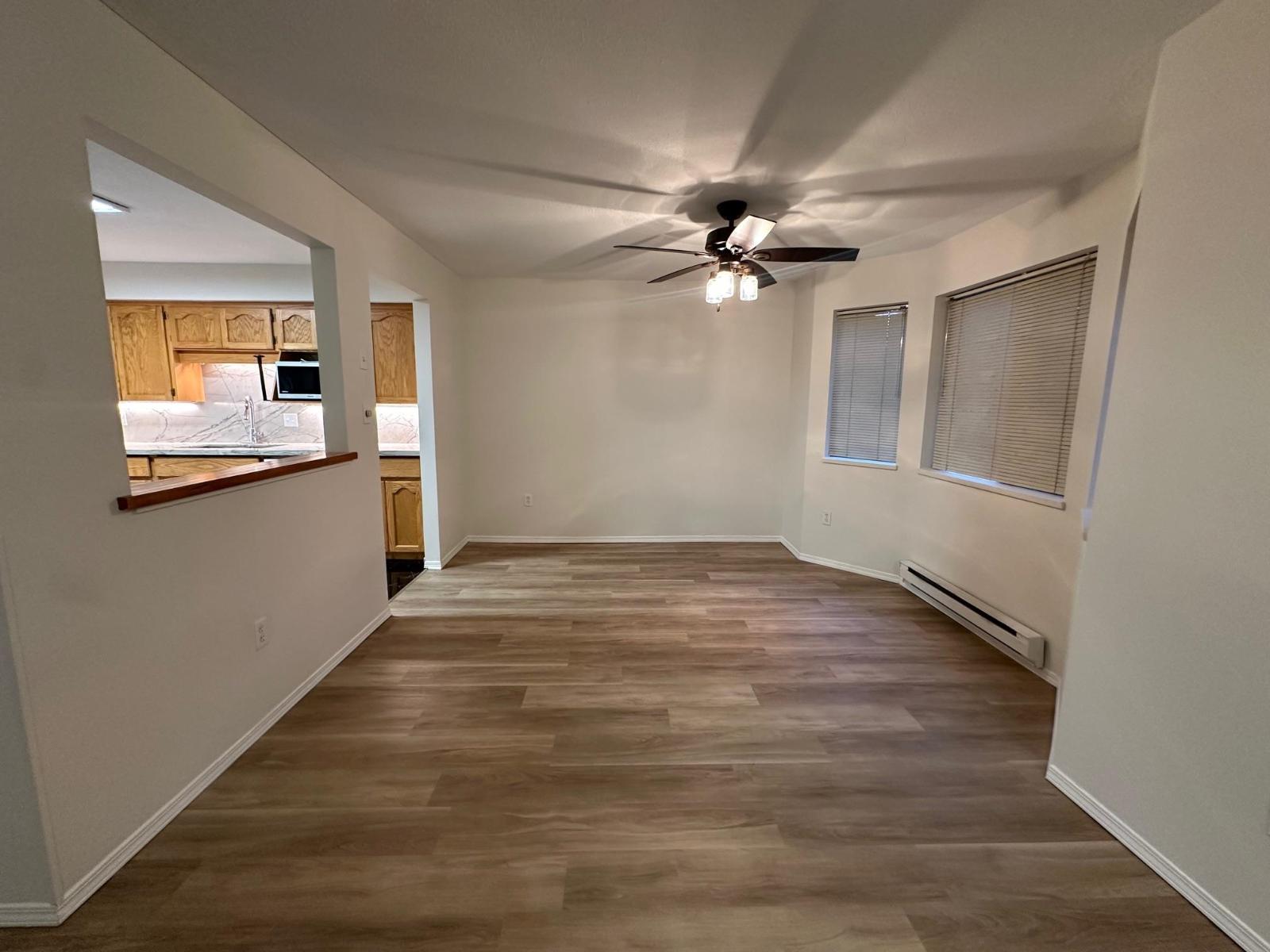 Welcome to Tiffany Park! This corner unit, situated on the quiet side of the building, offers a peaceful and comfortable living experience. Located on the first floor, this suite boasts a bright and open plan with abundant windows, allowing natural light to flood in. Gas fireplace. Recent updates: new flooring, bathroom cabinets, paint. Convenient location, close to everything with easy transit access. Strata fees include gas, electricity, heat, hot water. Vacant Easy to show. (id:63510)