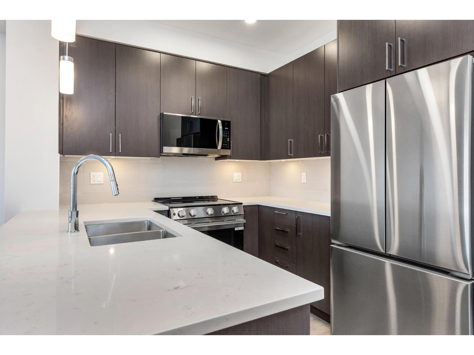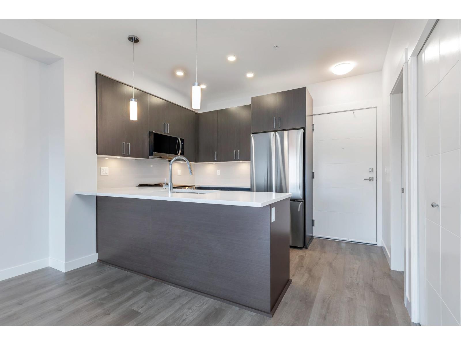 Welcome home to this shiny and new, stunning 730 sq. ft. 2-bed, 1 bath condo, in beautiful Jacob. A new 6-storey, modern development in Central Abby! Tree-top views, and an abundance of natural light! Skillfully designed with beautiful finishes, and maximum use of space! Gorgeous kitchen with elegant and classic dark cabinetry, quartz counter tops, under-mount lighting,S/S appliances, soft-close drawers.Upgrades incl. gorgeous laminate floors and 2x6 micro locker. Beautifully landscaped, with a 'gathering' space, plus a safe play area for the 'littles'! Conveniently located near the historic downtown core, you'll enjoy a wonderful array of shops, restaurants, and cozy cafes. Close to UFV, and all level of schools. Move-in ready! Perfect for first-time Buyers, down-sizing or investment! (id:63510)