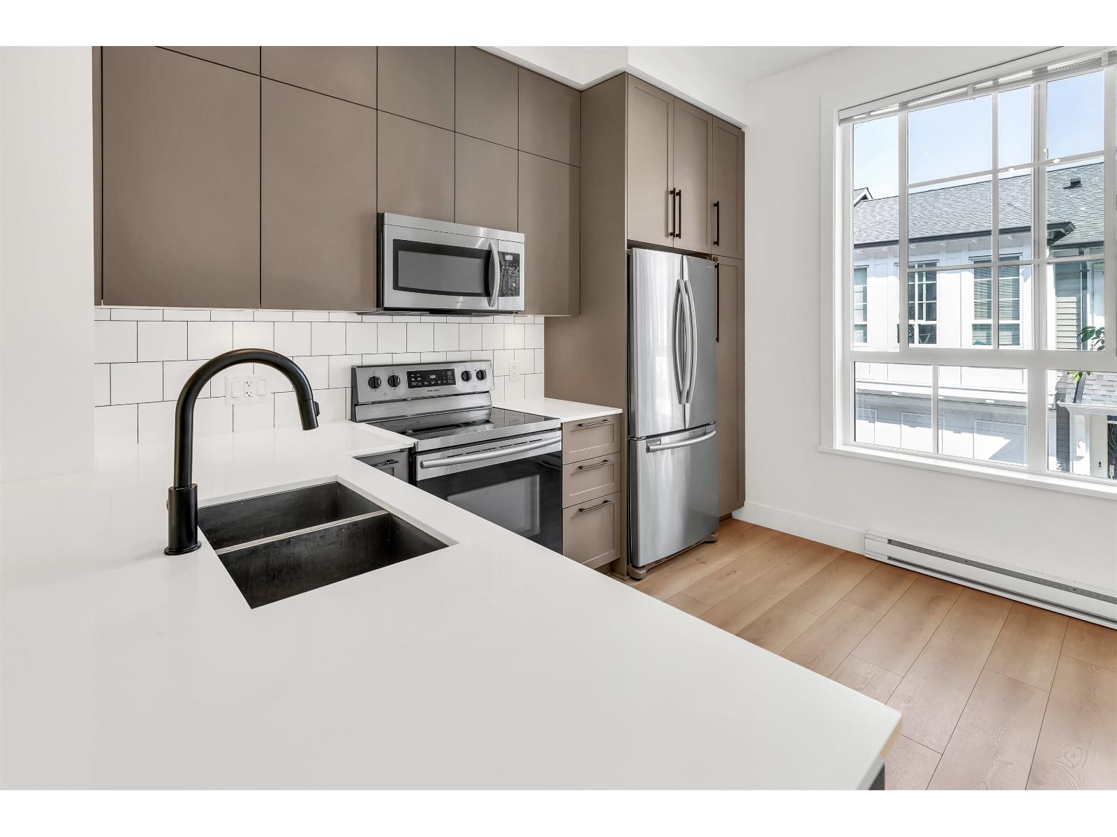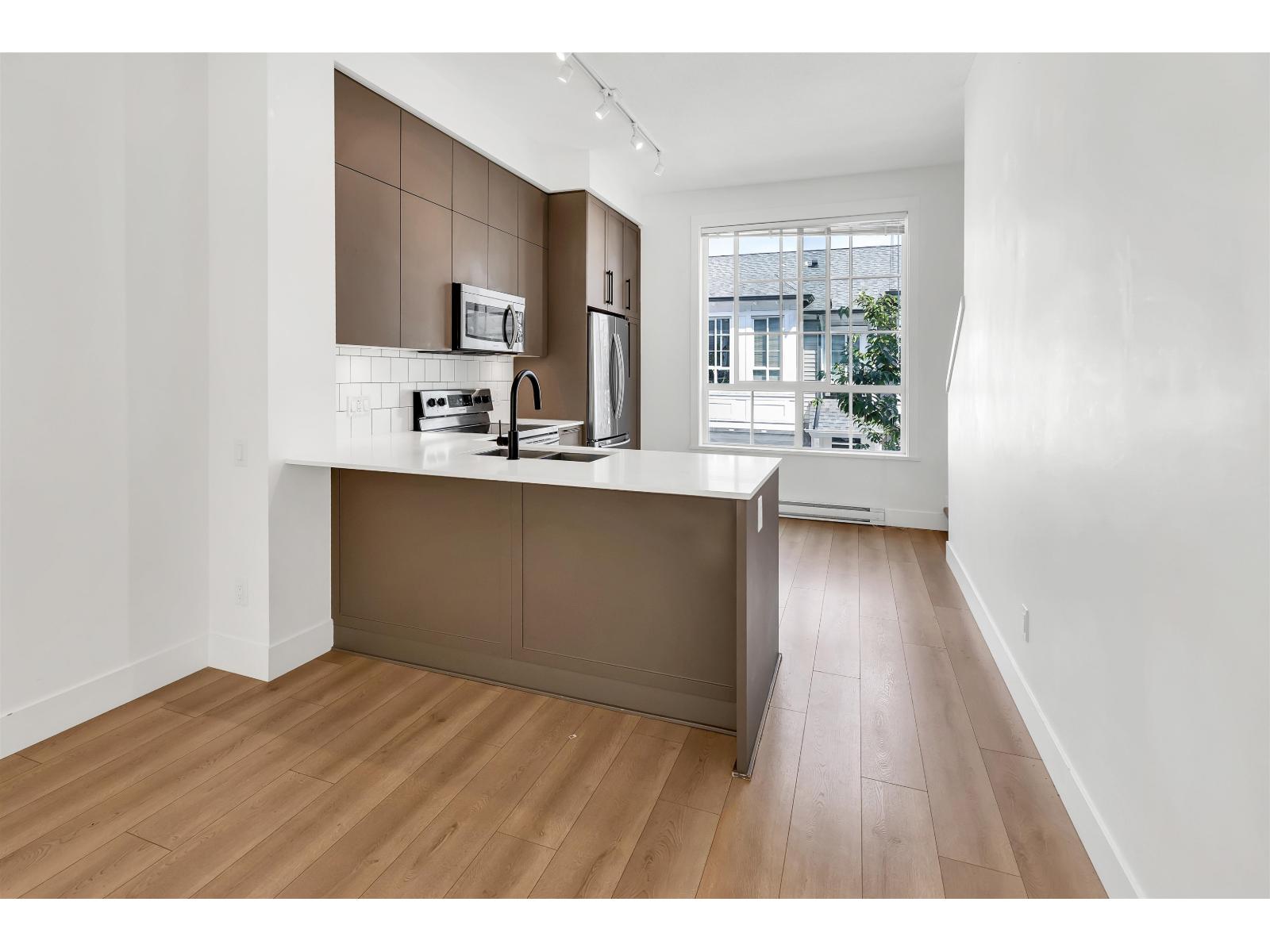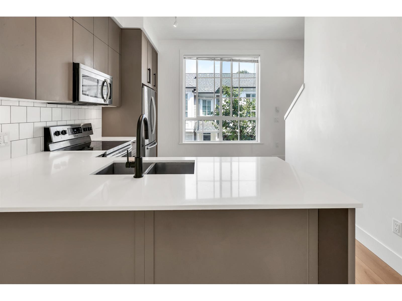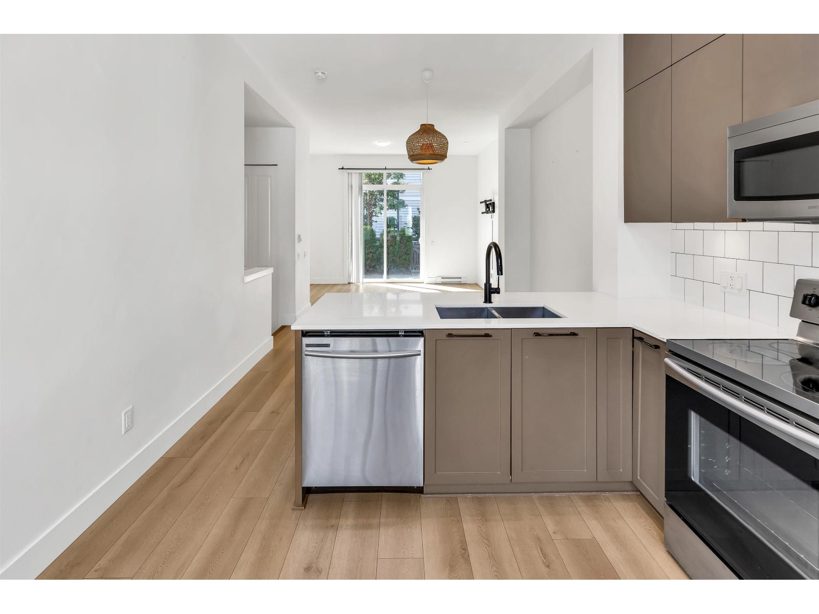 MOVE-IN READY! Welcome to Gardner by Mosaic Homes in the heart of West Abbotsford. This bright and modern 2 bedroom, 2 bathroom townhome offers 1,067 sqft of living space, making it the perfect starter home for a young family or first-time buyers. Step inside to an open-concept main floor with 10 ft ceilings, oversized windows, and a walk-out kitchen/living area that flows seamlessly to your private patio. The kitchen features quartz countertops, stainless steel appliances, and plenty of storage, ideal for both everyday living and entertaining. Upstairs, you'll find two spacious bedrooms and two full bathrooms, providing comfort and privacy for family and guests. The home also includes tandem parking for 2 vehicles & is an amazing location close to everything! Unit has a East facing door. (id:63510)