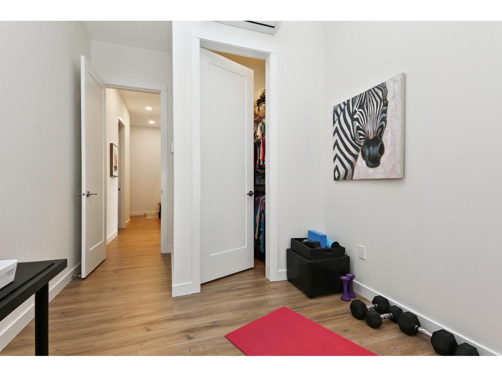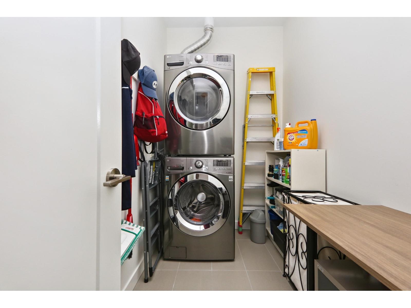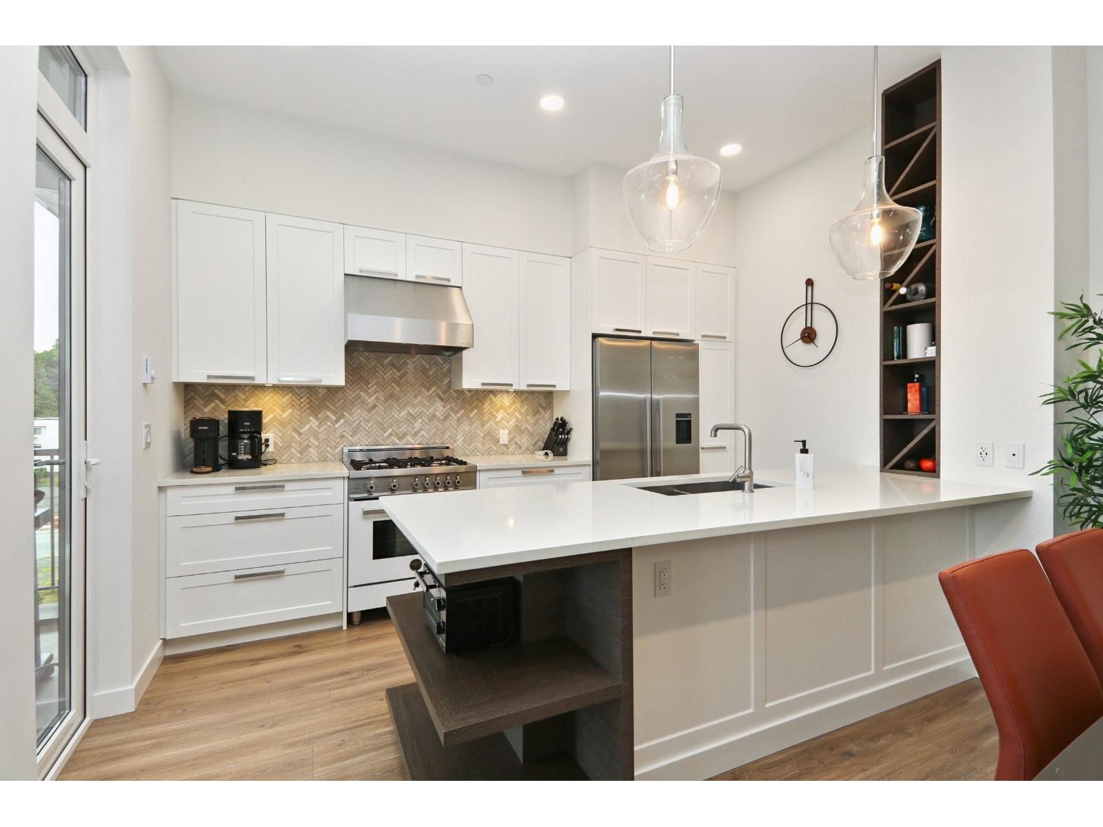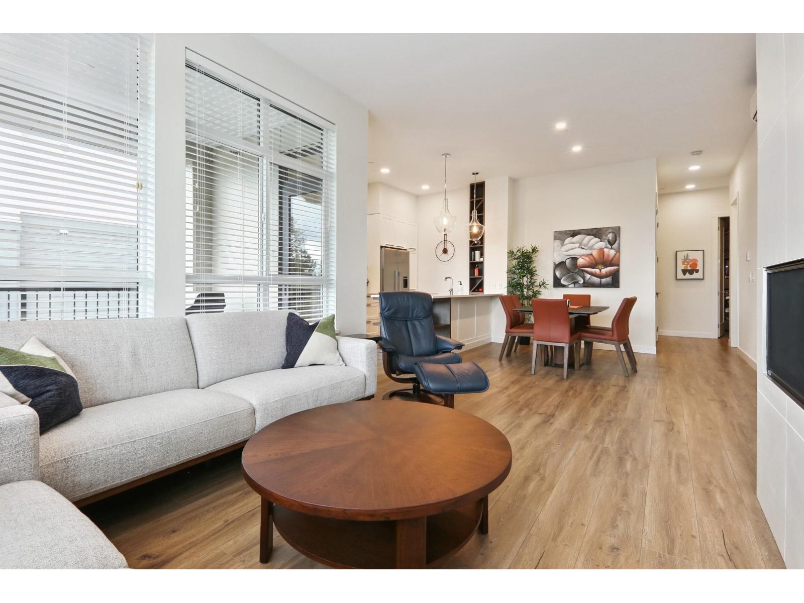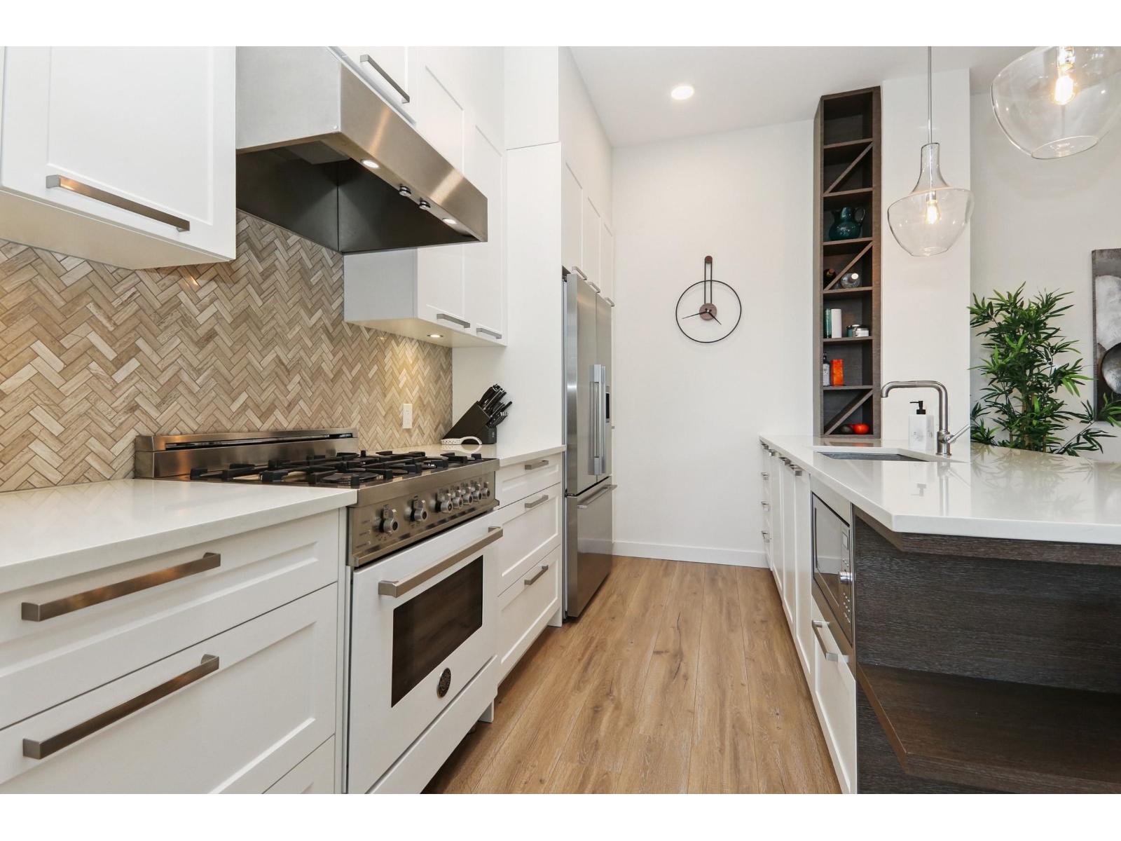 Luxury Top-Floor Corner Unit! Step into this exceptional 2-bedroom, 2-bathroom penthouse and feel instantly at home. With 1122 sq ft, of living space 10 ft ceilings and air conditioning, this bright, beautiful condo is the perfect blend of comfort and sophistication. Livingroom offers a custom built-in TV cabinet with storage and gas fireplace. The gourmet kitchen is equipped with high end stainless appliances, built-in wine rack, and quartz countertops. Primary ensuite features an oversized shower and both bathrooms have heated flooring. Updates include waterproof laminate plank flooring and freshly painted walls & ceilings(2023) Covered NW-facing deck with natural gas hookup & water bib. Large secure storage unit with metal roll down door at the end of one of your 2 parking spots. (id:63510)